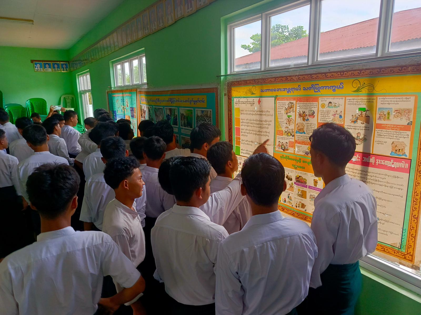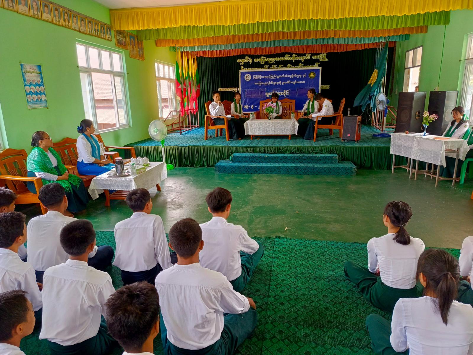 ယင်းနောက် တက်ရောက်လာကြသည့် ကျောင်းသား၊ ကျောင်းသူများက သိလိုသည်များကို မေးမြန်းကြရာ စကားဝိုင်းပါဝင်ဆွေးနွေးသူတို့က ဖြေကြားပေးခဲ့ကြပြီး ခရိုင်ပြန်ကြားရေးနှင့်ပြည်သူ့ဆက်ဆံရေးဦးစီးဌာန လက်ထောက်ညွှန်ကြားရေးမှူး ဒေါ်လှလှဌေးက စကားဝိုင်းနှင့်ပတ်သက်၍ ပြန်လည်သုံးသပ်ဆွေးနွေးပေးခဲ့သည်။