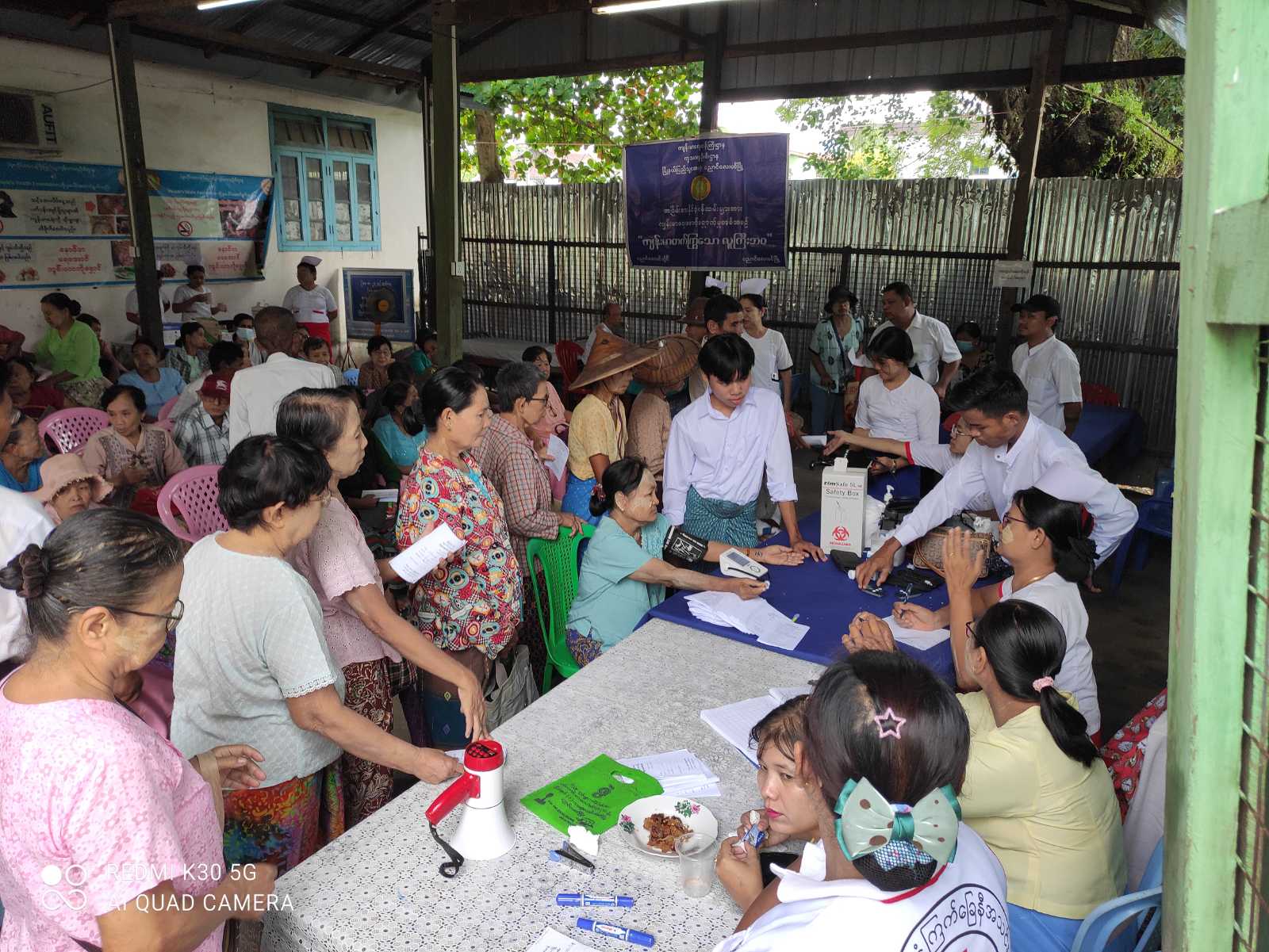 အဆိုပါအခမ်းအနားသို့ခရိုင်စီမံခန့်ခွဲရေးနှင့်အုပ်ချုပ်ရေးကော်မတီဥက္ကဋ္ဌ ဦးအောင်ကျော်စိုးနှင့်အဖွဲ့ဝင်များ၊ မြို့နယ်စီမံခန့်ခွဲရေးနှင့်အုပ်ချုပ်ရေးကော်မတီဥက္ကဋ္ဌ ဦးကျော်ဘုန်းမောင်နှင့် အဖွဲ့ဝင်များ၊ ရွှေလုပ်ငန်းရှင်အသင်းအလှူရှင်များ၊ ကိုဖိုးခွား(ဆေးဆိုင်)မှ စေတနာရှင် ဆေးအလှူရှင်များနှင့် မြို့မိမြို့ဖများတက်ရောက်ခဲ့ကြပြီး မြို့နယ်ဆရာဝန်ကြီး ဒေါက်တာ စောကလျာမှ ဦးဆောင်၍ ကျန်းမာရေးဝန်ထမ်းများက မြို့နယ်အတွင်းရှိ အငြိမ်းစား နိုင်ငံ့ဝန်ထမ်းများအား ငွေကြေးကုန်ကျမှုမရှိစေဘဲ ကျန်းမာရေးတိုးတက်ကောင်းမွန်စေရေး၊ ကိုယ်လက်လှုပ်ရှားအားကစားများ ပြုလုပ်ပေးခြင်း၊ ဆီးချိုသွေးချိုတိုင်းတာပေးခြင်း၊ သွေးပေါင်ချိန်ပေးခြင်း၊ ရောဂါများဖြစ်ပွားနေပါက စောလျင်စွာကုသခြင်းဖြင့် နောက်ဆက်တွဲ ဆိုးကျိုးများမဖြစ်ပေါ်စေရေး၊ ဆောင်ရန်/ရှောင်ရန်များအား သေချာစွာသိရှိနားလည်ပြီး သက်တမ်းစေ့ နေထိုင်သွားနိုင်စေရေးတို့အတွက် လစဉ်လတိုင်း ကျန်းမာရေးစောင့်ရှောက်မှုများ ပြုလုပ်ပေးလျက်ရှိကြောင်း သိရသည်။