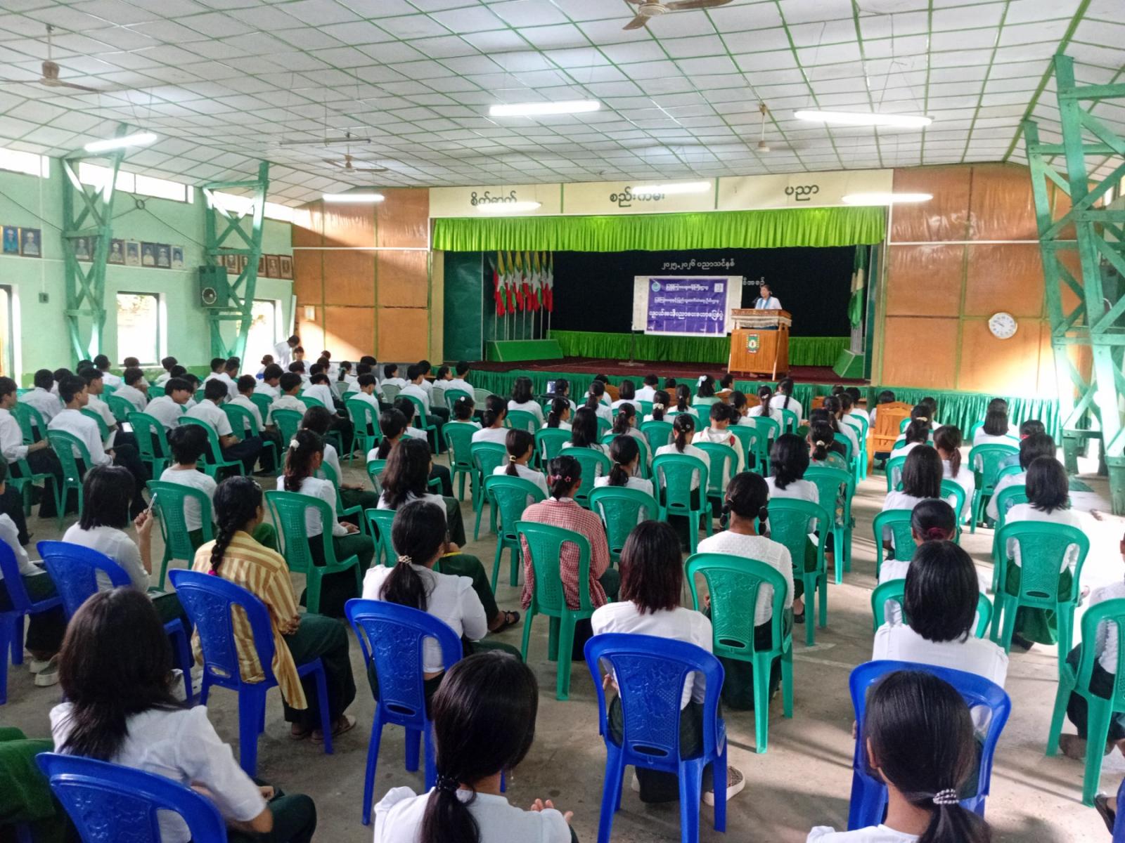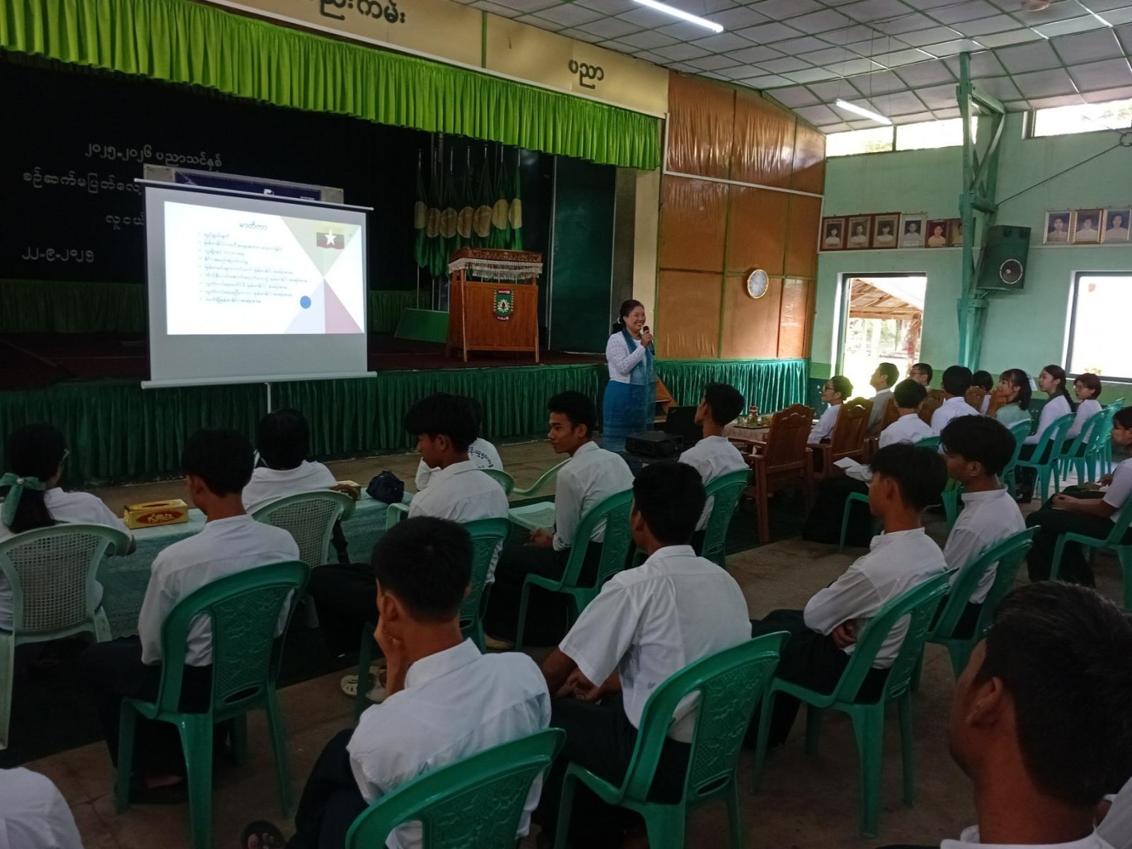 ရှေးဦးစွာ မြို့နယ်ပညာရေးမှူး ဦးထင်အောင်ကျော်က အဖွင့်အမှာစကားပြောကြားခဲ့ပြီးနောက် ခရိုင်ပြန်ကြားရေးနှင့်ပြည်သူ့ဆက်ဆံရေးဦးစီးဌာန ခရိုင်ဦးစီးမှူး ဒေါ်ခင်စန္ဒာဆွေက "မြန်မာနိုင်ငံသမိုင်းကို လေ့လာခြင်း" ခေါင်းစဉ်ဖြင့် ဆွေးနွေးရာတွင် ကျောင်းသားလူငယ်များအတွက် မျိုးချစ်စိတ်ဓါတ်ရှင်သန်ထက်မြက်စေရန်၊ လွတ်လပ်ရေးကို တန်ဖိုးထားတတ်စေရန်၊ အတိတ်သမိုင်းကို သင်ခန်းစာယူပြီး မျက်မှောက်ခေတ်နိုင်ငံဖွံ့ဖြိုးတိုးတက်ရေးတွင် အသိပညာရှင် အတတ်ပညာရှင်များဖြစ်ကြသည့် လူငယ်များ၏စွမ်းအားဖြင့် တည်ဆောက်ရန် အသိပညာပေးဟောပြောခဲ့သည်။ ထို့နောက် ဦးစီးအရာရှိ ဒေါ်အေးအေးမာက "လူငယ်တွေစာဖတ်ဖို့ စာကြည့်တိုက်ကို သွားကြစို့" ခေါင်းစဉ်ဖြင့် အသိပညာပေးဟောပြောခဲ့ပါသည်။