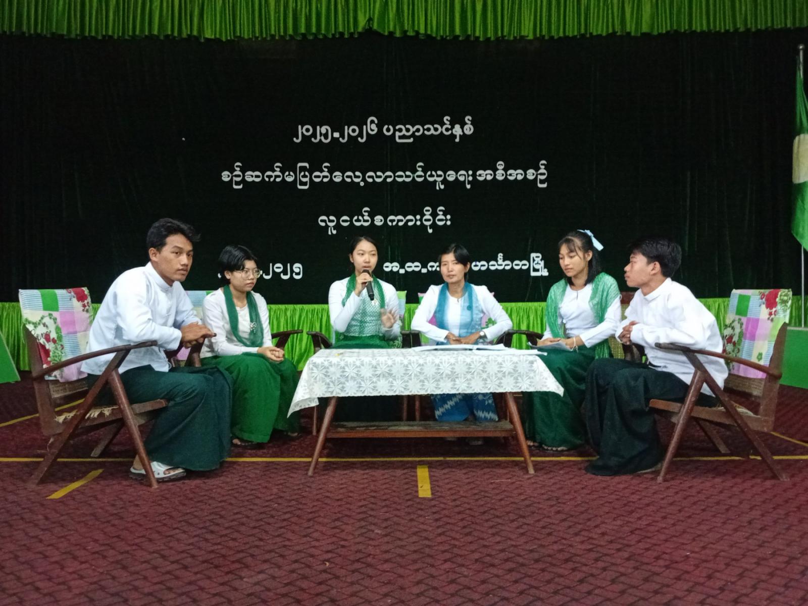 ဆက်လက်၍ လူငယ်စကားဝိုင်းကို ကျင်းပရာ ကျောင်းသား/သူ (၅)ဦးက လူငယ်နှင့် ပေါင်းသင်းဆက်ဆံရေး၊ လူငယ်နှင့်မူးယစ်ဆေးဝါးအန္တရာယ်၊ လူငယ်နှင့်စာဖတ်ခြင်း၊ လူငယ်နှင့်ယဉ်ကျေးမှု၊ လူငယ်နှင့်နည်းပညာစသည့် ခေါင်းစဉ်များဖြင့် ပါဝင်ဆွေးနွေးခဲ့ကြပြီး၊ တက်ရောက်လာသော ကျောင်းသား/သူများမှ သိရှိလိုသည်များကို မေးမြန်းခဲ့ကြရာ တာဝန်ရှိသူများက ပြန်လည်ဖြေကြားခဲ့ကြပါသည်။ ထို့နောက် လူငယ်စကားဝိုင်းတွင် ပါဝင်ဆွေးနွေးခဲ့ကြသော ကျောင်းသား/သူများကို ခရိုင်ပြန်/ဆက်ဦးစီးအရာရှိက အမှတ်တရလက်ဆောင်များ ပေးအပ်ပါသည်။