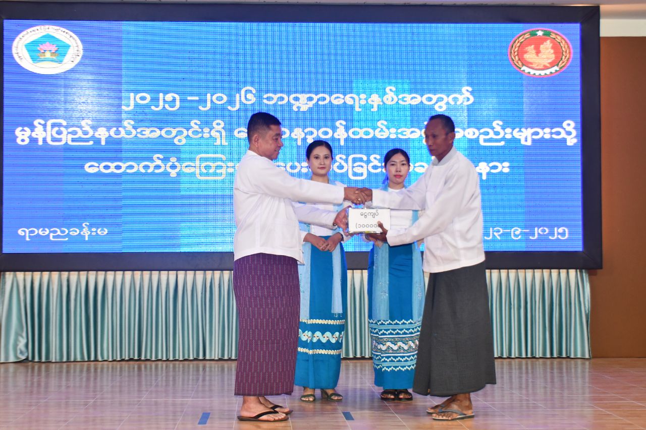 ထို့နောက် ပြည်နယ်ဝန်ကြီးချုပ်က လူငယ်ဖွံ့ဖြိုးရေးပရဟိတဂေဟာ(၃)ခု၊ အမျိုးသမီးဂေဟာ (၁)ခုတို့အတွက် ငွေကျပ် (၆၆ဒသမ၂၈)သန်း၊ ဘိုးဘွားရိပ်သာ (၄)ခု တို့အတွက် ငွေကျပ် (၁၃ဒသမ၂၆၀)သန်း၊ ကိုယ့်အားကိုယ်ကိုး မူကြိုကျောင်း (၈၆)ကျောင်းအတွက် ငွေကျပ် (၉၁ဒသမ၁၆၀)သန်းနှင့် လူငယ်ရိပ်သာ(၁)ခုအတွက် ငွေကျပ် (၁)သိန်းတို့အား ထောက်ပံ့ပေးအပ်ခဲ့ရာ စေတနာ့ဝန်ထမ်း အဖွဲ့အစည်းကိုယ်စားလှယ်များက လက်ခံရယူခဲ့သည်။