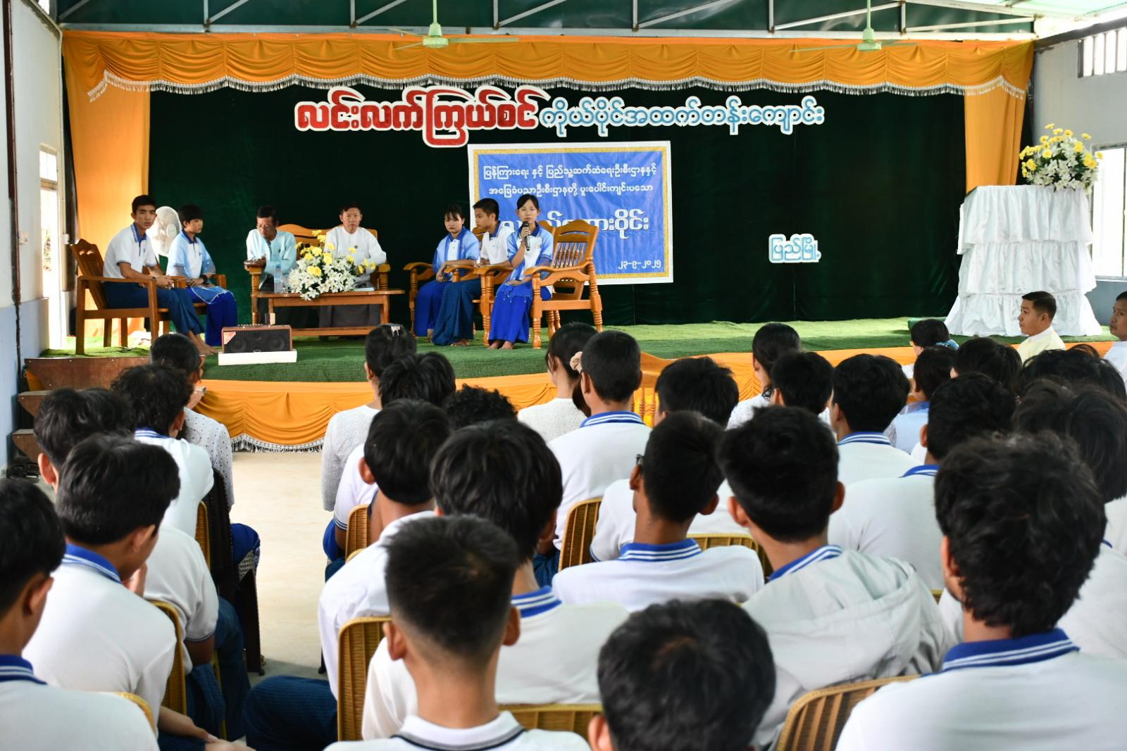 ယင်းနောက် လူငယ်စကားဝိုင်းတွင် ခရိုင်ပြန်/ဆက်ဦးစီးအရာရှိ ဦးအောင်ကိုသန့်နှင့် ဒုတိယမြို့နယ်ပညာရေးမှူး ဦးအေးလွင်တို့က Moderator အဖြစ်ဆောင်ရွက်ကြပြီး အဆိုပါကျောင်းမှ Grade- 11 ကျောင်းသား/ကျောင်းသူများက “လူငယ်နှင့်စာပေ”၊ “လူငယ်နှင့်သဘာဝပတ်ဝန်းကျင”၊ “လူငယ်နှင့်ဆိုရှယ်မီဒီယာ”၊ “လူငယ်နှင့်အားကစား” “လူငယ်နှင့်မူးယစ်ဆေးဝါးအန္တရာယ်”ခေါင်းစဉ်များဖြင့် သက်ဆိုင်ရာခေါင်းစဉ်အလိုက် တစ်ဦးချင်းအလှည့်ကျဦးဆောင်ပြောဆိုဆွေးနွေးကြသည်။