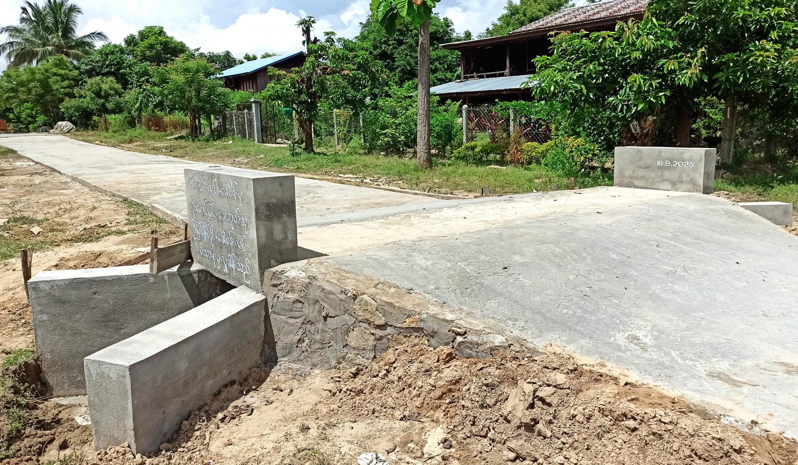 ထိုသို့ ဆောင်ရွက်ရာတွင် ကွန်ကရစ်တံတား အရှည် ၁၈ ပေ၊ အမြင့် ၃ ပေ၊ ရေသွားလမ်းအကျယ် ၂ ပေခွဲနှင့် ကွန်ကရစ်လမ်း အရှည်ပေ ၃၀၀၊ အကျယ် ၁၈ ပေ၊ ထု ၄ လက်မ ခင်းခြင်းကို ကျေးရွာနေပြည်သူများလုပ်အား၊ အလှူရှင်များ လှူဒါန်းမှု ငွေကျပ် သိန်း ၁၅၀ ကျော်ဖြင့် အကောင်ထည်ဖော်ဆောင်ရွက်ခဲ့ကြောင်း သိရသည်။