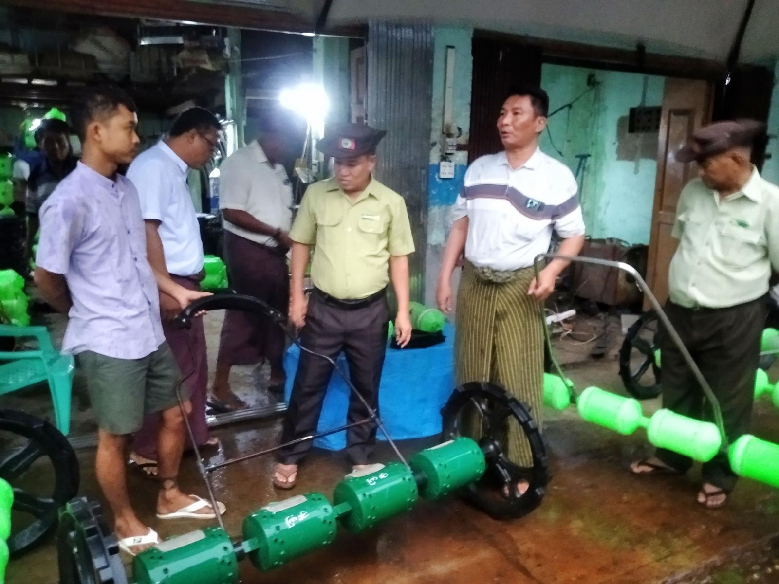 မြန်အောင်ခရိုင်အတွင်းရှိ မြန်အောင်၊ ကြံခင်း၊ အင်္ဂပူမြို့နယ်များတွက် လိုအပ်သော Drum Seeder အလက်ရေ (4718) ထုတ်လုပ်မည့် “ဝင်းကြွယ်” စက်မှု၊ လက်မှုနှင့်လယ်ယာသုံးစက်ကိရိယာ ထုတ်လုပ်ရေးလုပ်ငန်းဆောင်ရွက်နေမှုများအား ကြည့်ရှုပြီး "ဝင်းကြွယ်" ထုတ်လုပ်ငန်းတာဝန်ခံ ဦးအောင်ဆန်းဝင်းက ထုတ်လုပ်မှုအဆင့်ဆင့်တို့အား ခရိုင်စီမံခန့်ခွဲရေးနှင့်အုပ်ချုပ်ရေးကော်မတီဥက္ကဋ္ဌ ဦးမျိုးလှိုင်နှင့်အဖွဲ့၊ မြို့နယ်စီမံခန့်ခွဲရေးနှင့်အုပ်ချုပ်ရေးကော်မတီဥက္ကဋ္ဌ ဦးဝင်လှိုင်နှင့်အဖွဲ့ဝင်များအား ရှင်းလင်းတင်ပြပြီး တာဝန်ရှိသူများက တောင်သူများအတွက် ရေရှည်အသုံးပြုနိုင်စေရန် အရည်အသွေးကောင်းမွန်သော ပစ္စည်းများကိုသာ သုံးစွဲရန်နှင့် မျိုးစေ့များလေလွှင့်မှုမဖြစ်ပေါ်စေရေး အလေးထား ဆောင်ရွက်သွားရန်မှာကြားပြီး Drum Seeder များ တပ်ဆင်နေမှုအား လှည့်လည် ကြည့်ရှုကြသည်။