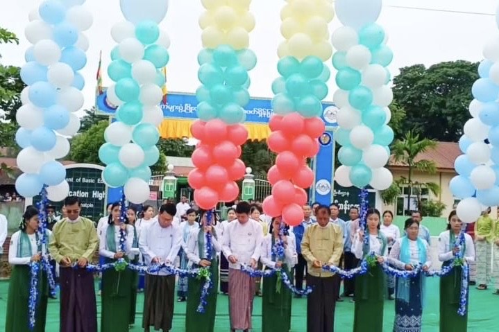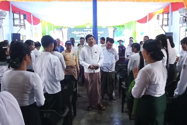 ပဲခူးတိုင်းဒေသကြီး၊ ပဲခူးခရိုင်၊ သနပ်ပင်မြို့ အခြေခံပညာအထက်တန်းကျောင်း (သနပ်ပင်) ၌ စာကြည့်တိုက်များ ဖွံ့ဖြိုးတိုးတက်ရေးနှင့် စာဖတ်ရှိန်မြှင့်တင်ရေးအခမ်းအနားအား ယနေ့နံနက်ပိုင်းက ကျင်းပပြုလုပ်ရာ ပဲခူးတိုင်းဒေသကြီးလူမှုရေးရာဝန်ကြီး ဦးမျိုးအောင် တက်ရောက်ချီးမြှင့်သည်။