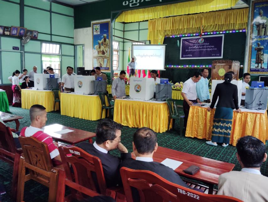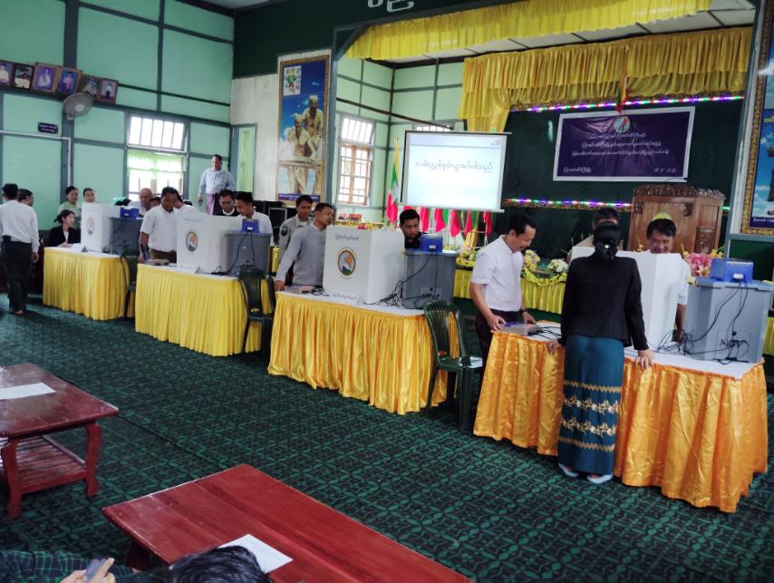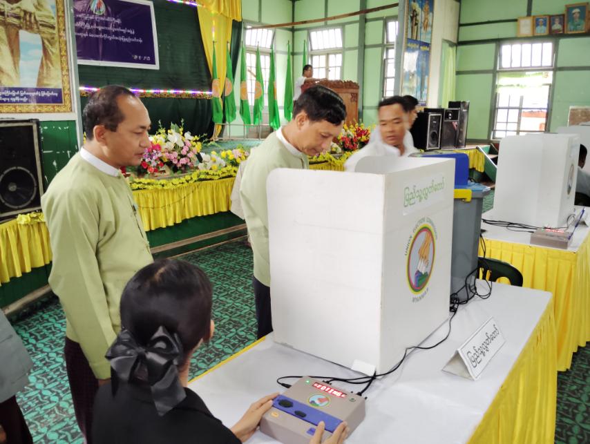 ယင်းနောက်ခရိုင်စီမံခန့်ခွဲရေးနှင့်အုက်ချုပ်ရေးကော်မတီ ဥက္ကဋ္ဌနှင့် ဌာနဆိုင်ရာတာဝန်ရှိသူများ၊ တက်ရောက်လာသူများက မဲပေးစက်ဖြင့် စမ်းသပ်မဲပေးခြင်းကို လက်တွေ့လုပ်ဆောင်ခဲ့ပြီး သင်တန်းသားများအား ဆက်လက်သင်တန်းပို့ချပေးလျက်ရှိကြောင်းသိရသည်။