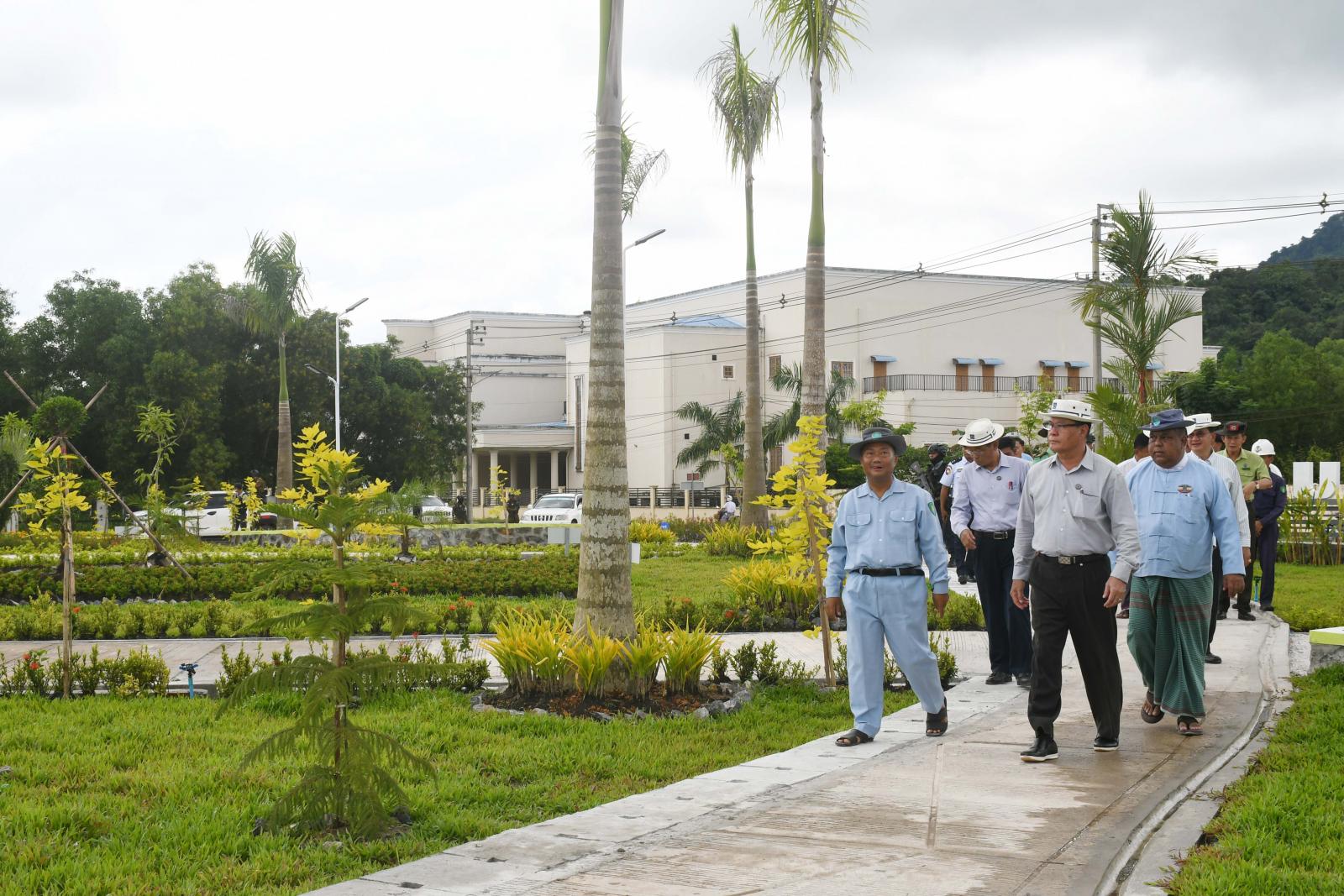 ဆက်လက်၍ ပြည်နယ်ဝန်ကြီးချုပ်နှင့်အဖွဲ့သည် ဘားအံတက္ကသိုလ်ဘွဲ့နှင်းသဘင်ခန်းမအနီး ကရင်ပြည်နယ် ဧည့်ရိပ်သာရှေ့ ရိပ်သာပန်းခြံတည်ဆောက်ခြင်းလုပ်ငန်းအား ကြည့်ရှုစစ်ဆေးရာ ပြည်နယ်စည်ပင်သာယာရေးအဖွဲ့ ညွှန်ကြားရေးမှူး သူရမြင့်သူ၊ အင်ဂျင်နီယာမှူးကြီးဦးစိုးလွင်တို့က တည်ဆောက်ရေးလုပ်ငန်း (၁၇) ခုနှင့် အရိပ်ရပင်များ၊ ပန်းအလှပင်များ ထည့်သွင်းစိုက်ပျိုးပြီးစီးမှုအခြေအနေ၊ လုပ်ငန်းတစ်ခုလုံး၏ ၉၀ ရာခိုင်နှုန်းဆောင်ရွက်ပြီးစီး မှုနှင့် ၂၀၂၅ ခုနှစ် အောက်တိုဘာလတွင် ၁၀၀ ရာခိုင်နှုန်းဆောင်ရွက်ပြီးစီးမည့်အခြေအနေများကို ရှင်းလင်းတင်ပြရာ ပြည်နယ်ဝန်ကြီးချုပ်က ရိပ်သာပန်းခြံအတွင်း လိုက်လံကြည့်ရှုစစ်ဆေး၍ လိုအပ်သည်များ မှာကြားခဲ့သည်။