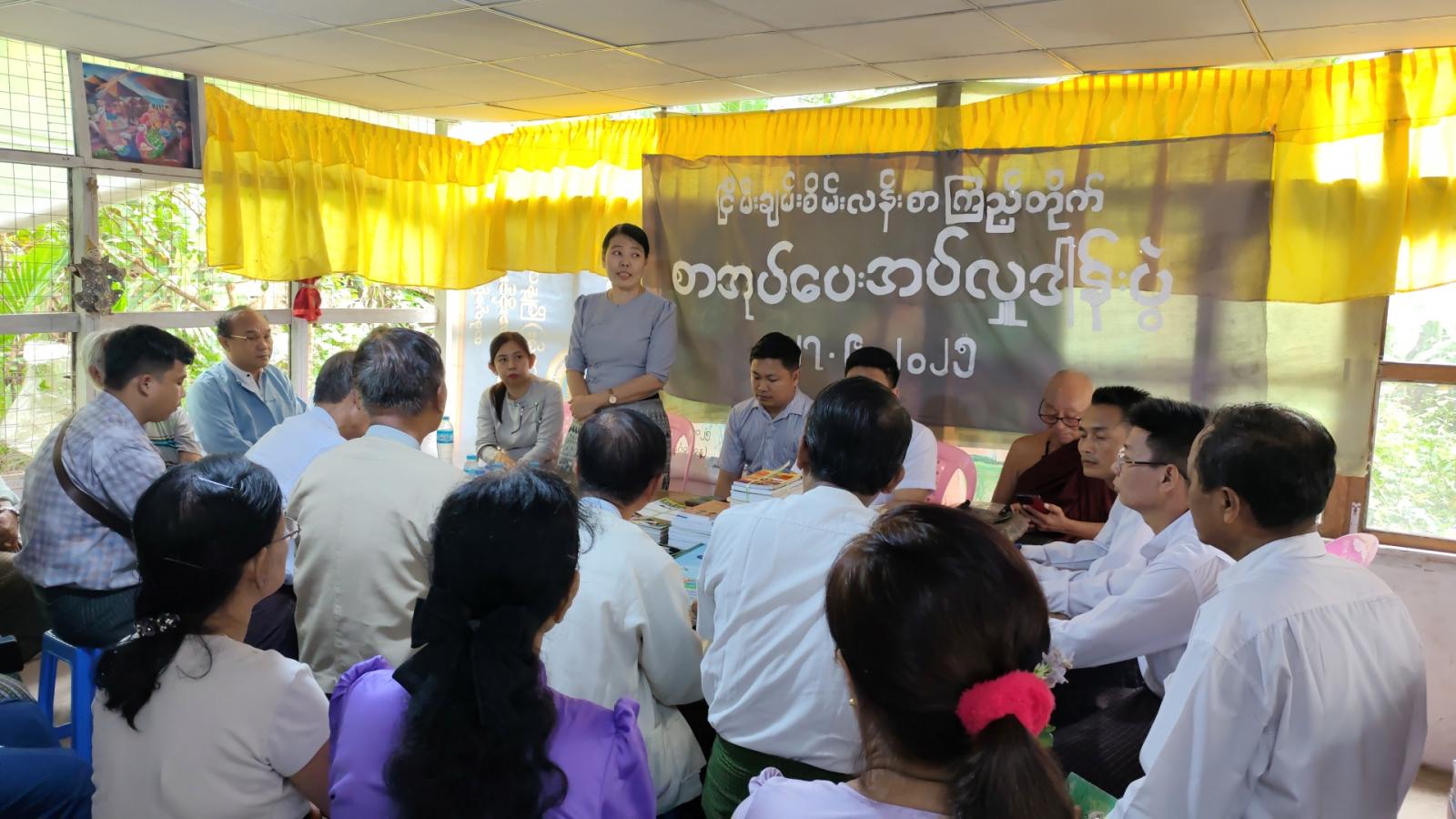 လှူဒါန်းပွဲတွင် ရန်ကုန်တိုင်းဒေသကြီး၊ ပြန်ကြားရေးနှင့်ပြည်သူ့ဆက်ဆံရေးဦးစီးဌာနမှ ညွှန်ကြားရေးမှူး ဒေါ်ခင်စောလင်းက အမှာစကားပြောကြားခဲ့သည်။
