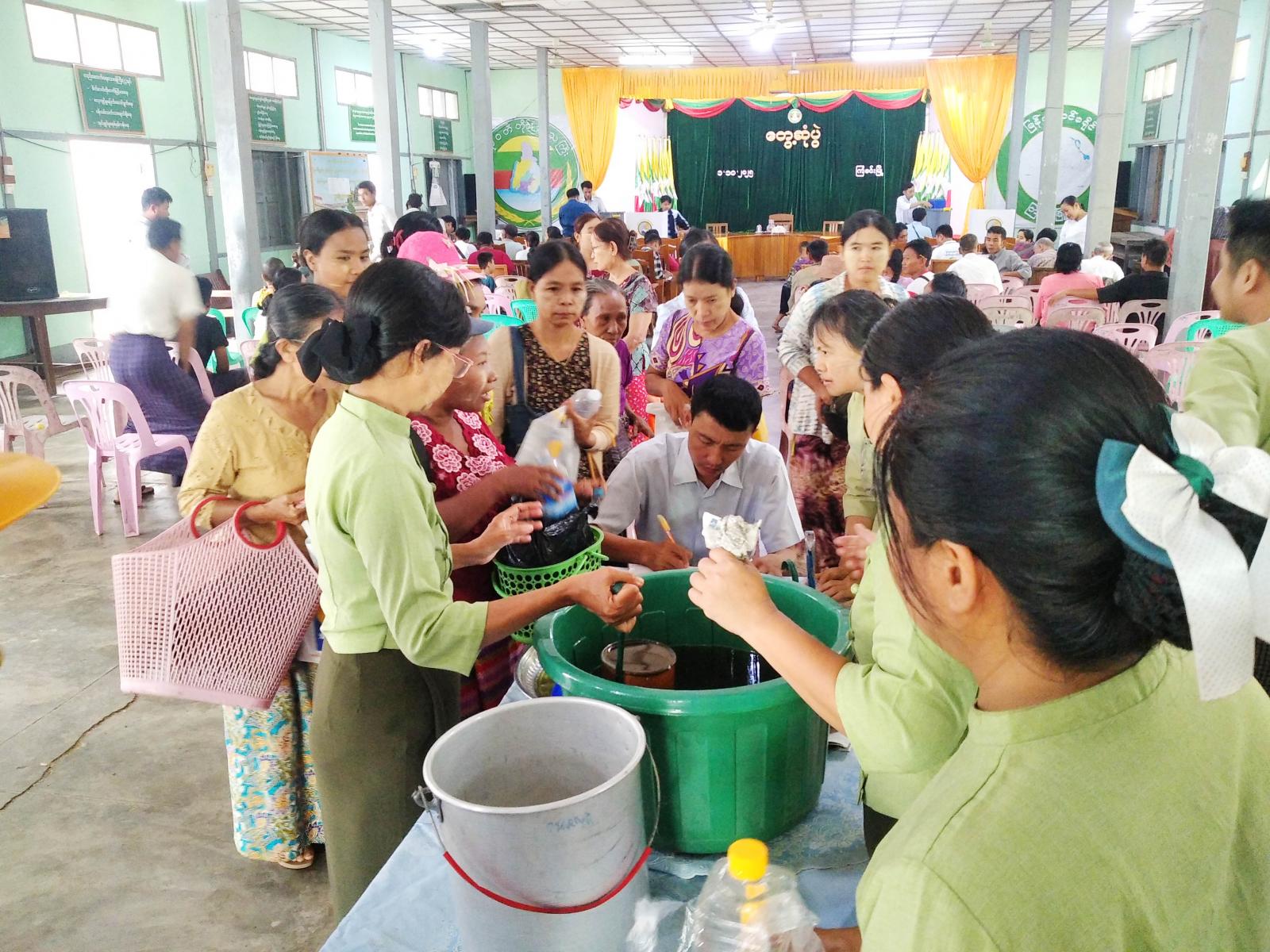 ထို့နောက် နေရပ်စွန့်ခွာပြည်သူများ စားသောက်ရေးအဆင်ပြေစေရန်အတွက် တစ်ဦးလျှင် စားသုံးဆီ ၅၀ ကျပ်သားကို ၃၅၀၀ နှုန်းဖြင့် မြို့နယ်အထွေထွေအုပ်ချုပ်ရေးဦးစီးဌာနမှ ဝန်ထမ်းများက ရောင်းချပေးခဲ့ကြကြောင်း သိရသည်။