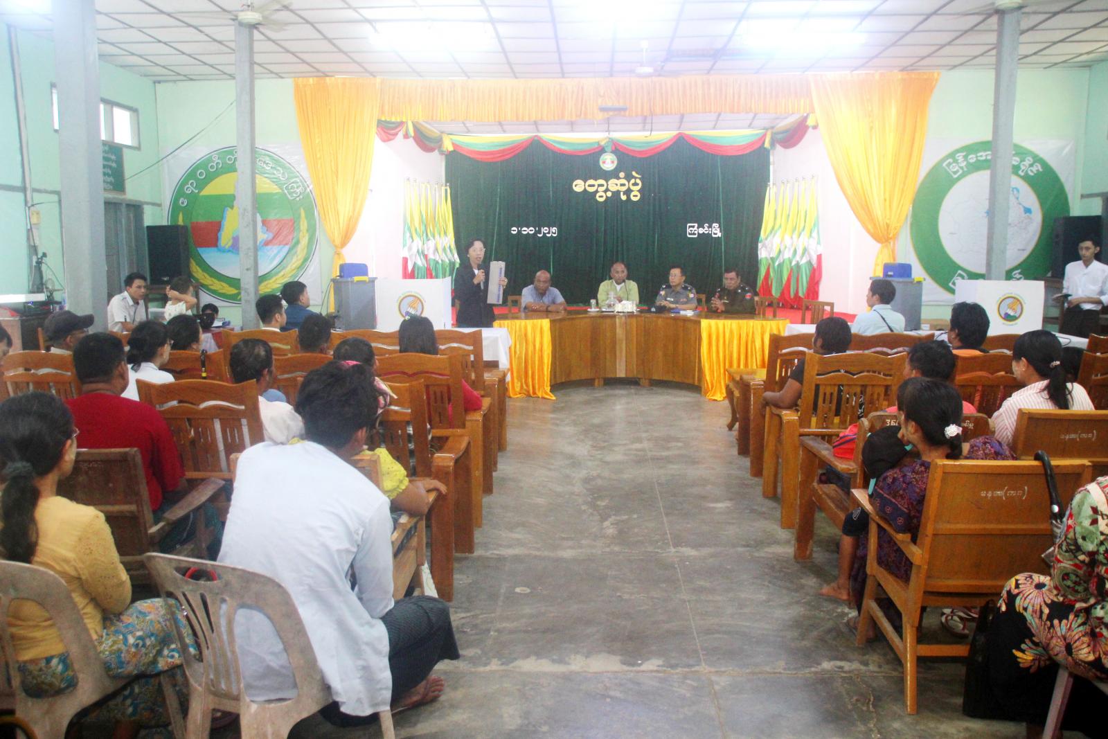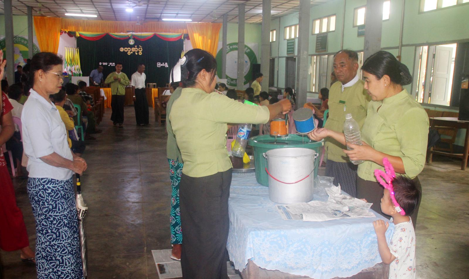 ဧရာဝတီတိုင်းဒေသကြီး၊ မြန်အောင်ခရိုင်၊ ကြံခင်းမြို့နယ်အတွင်းရှိ ရပ်ကွက်/ ကျေးရွာအုပ်စုများသို့ ရောက်ရှိနေကြသော နေရပ်စွန့်ခွာပြည်သူများအား အောက်တိုဘာလ ၁ ရက်နေ့ နံနက်ပိုင်းက မဲပေးစက်ဆိုင်ရာအသိပညာပေးခြင်းနှင့် လက်တွေ့သရုပ်ပြ စမ်းသပ်မဲပေးခြင်းနှင့် စားသုံးဆီများ သက်သာသောဈေးနှုန်းဖြင့် ရောင်းချပေးခြင်းကို မြို့နယ်အထွေထွေအုပ်ချုပ်ရေးဦးစီးဌာနရှိ ဧရာဦးခန်းမ၌ ပြုလုပ်ခဲ့သည်။