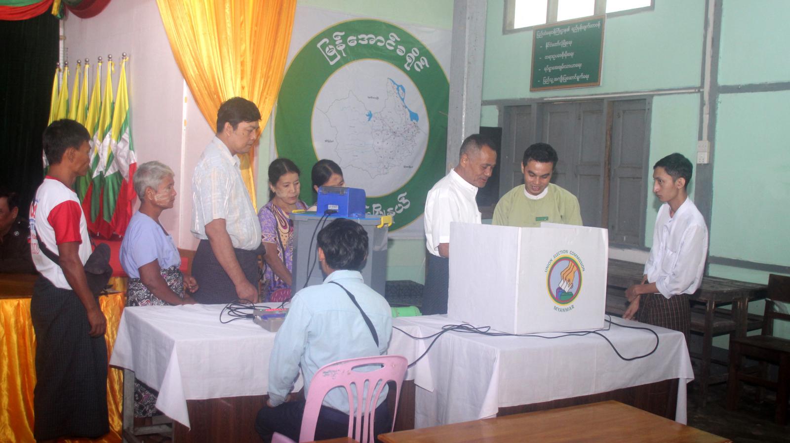 ပထမဦးစွာ မြို့နယ်စီမံခန့်ခွဲရေးနှင့် အုပ်ရေးကော်မတီအဖွဲ့ဥက္ကဋ္ဌ ဦးဝင်းလှိုင်က အဖွင့်အမှာစကားပြောကြားရာ၌ နေရပ်စွန့်ခွာပြည်သူများအား မည်သည့်နေရာတွင် မဲပေးနိုင်ရေး၊ ရောက်ရှိမြို့ နယ်အတွင်း မဲပေးမည်ဆိုပါက သက်ဆိုင်ရာ ရပ်ကွက်/ကျေးရွာအုပ်ချုပ်ရေးမှူးရုံးမှတဆင့် ပုစံ(၃-က) ဖြင့် လျှောက်ထားနိုင်ကြောင်း၊ နိုင်ငံသားစိစစ်ရေးကတ်ပြားများ ပျက်စီး၊ ပျောက်ဆုံးမှုရှိပါ လိုအပ်သလို သက်ဆိုင်ရာဌာနများဖြင့် ချိတ်ဆက်၍ ကူညီဆောင်ရွက်ပေးသွားမည်ဖြစ်ကြောင်း ပြောကြားပြီး၊ မြို့နယ်ရွှေးကောက်ပွဲအရာရှိ ဒေါ်ဝင်းဝင်းမြင့်က မဲဆန္ဒရှင်ပြည်သူများအား မဲပေးစက်၏ ဖွဲ့စည်းတည်ဆောက်ပုံ MEVM စက်ဖြင့်စမ်းသပ်မဲပေးမှု အဆင့်ဆင့်လုပ်ငန်းစဉ်များကိုရှင်းလင်း ပြောကြားသည်။ ဆက်လက်၍ အခမ်းအနားသို့ တက်ရောက်လာကြသည့် နေရပ်စွန့်ခွာပြည်သူများက တစ်ဦးချင်း လက်တွေ့စမ်းသပ်မဲပေးကြရာ တာဝန်ရှိသူများ ရှင်းလင်းပြသပေးကြသည်။