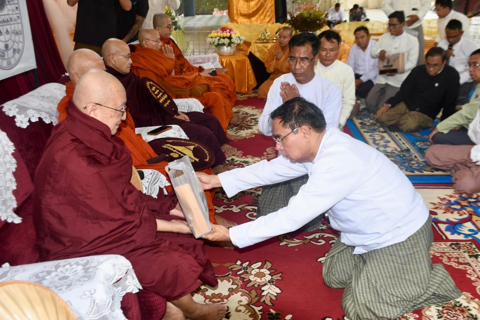 ထို့နောက် တိုင်းဒေသကြီး ဝန်ကြီးချုပ် ဦးမျိုးဆွေဝင်းက ပဲခူးမြို့၊ ကြခတ်ဝိုင်းပရိယတ္တိစာသင်တိုက်၏ ဦးစီးပဓာန နာယကဆရာတော်၊ သာသနာ့မဏ္ဍိုင်ပါဠိတက္ကသိုလ်ကျောင်းတိုက် ဦးစီးပဓာနနာယက ဆရာတော်နှင့် ရန်ကုန်မြို့၊ ဗဟန်းမြို့နယ်၊ ပါဠိတက္ကသိုလ်ညောင်တုန်းကျောင်းတိုက် ပဓာနနာယက လှရတနာဆရာတော်တို့ သင်္ကန်းအစရှိသော လှူဖွယ်ဝတ္တုပစ္စည်းများ ဆက်ကပ်လှူဒါန်းခဲ့သည်။ ၎င်းနောက် တိုင်းဒေသကြီးအစိုးရအဖွဲ့ဝင်ဝန်ကြီးများနှင့် အလှူရှင်များက ကြွရောက်လာသည့် ဆရာတော်/ သံဃာတော်များ သင်္ကန်းနှင့်လှူဖွယ်ဝတ္တုပစ္စည်းများ အသီးသီး ဆက်ကပ်လှူဒါန်းခဲ့ကြသည်။