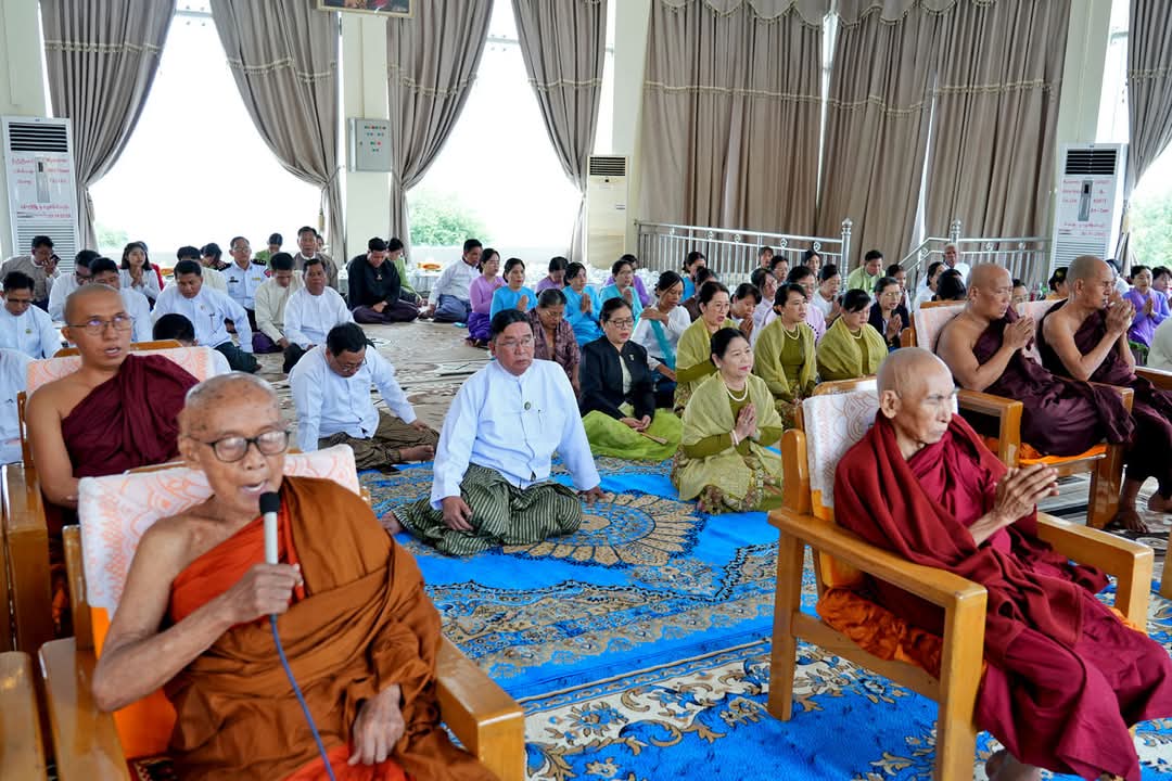 ထိုနောက် ဆရာတော် ဘဒ္ဒန္တသုမင်္ဂလ အမှူးပြုသည့် ဆရာတော်၊ သံဃာတော်များက မြသလွန်စေတီတော်မြတ်ကြီး၏ (၂၅၈၉) ကြိမ်မြောက် ဗုဒ္ဓပူဇနိယပွဲတော် ဖွင့်ပွဲအထိမ်းအမှတ် ပဌာန်းပစ္စယုဒ္ဒေသနှင့် ပစ္စယနိဒ္ဒေသတရားတော်များကို ရွတ်ပွားသရဇ္ဈာယ်တော်မူခဲ့ကြပြီးအခမ်းအနားကို ဗုဒ္ဓသာသနံစိရံတိဋ္ဌတု သုံးကြိမ်ရွတ်ဆို၍ အခမ်းအနားကို ရုပ်သိမ်းခဲ့သည်။