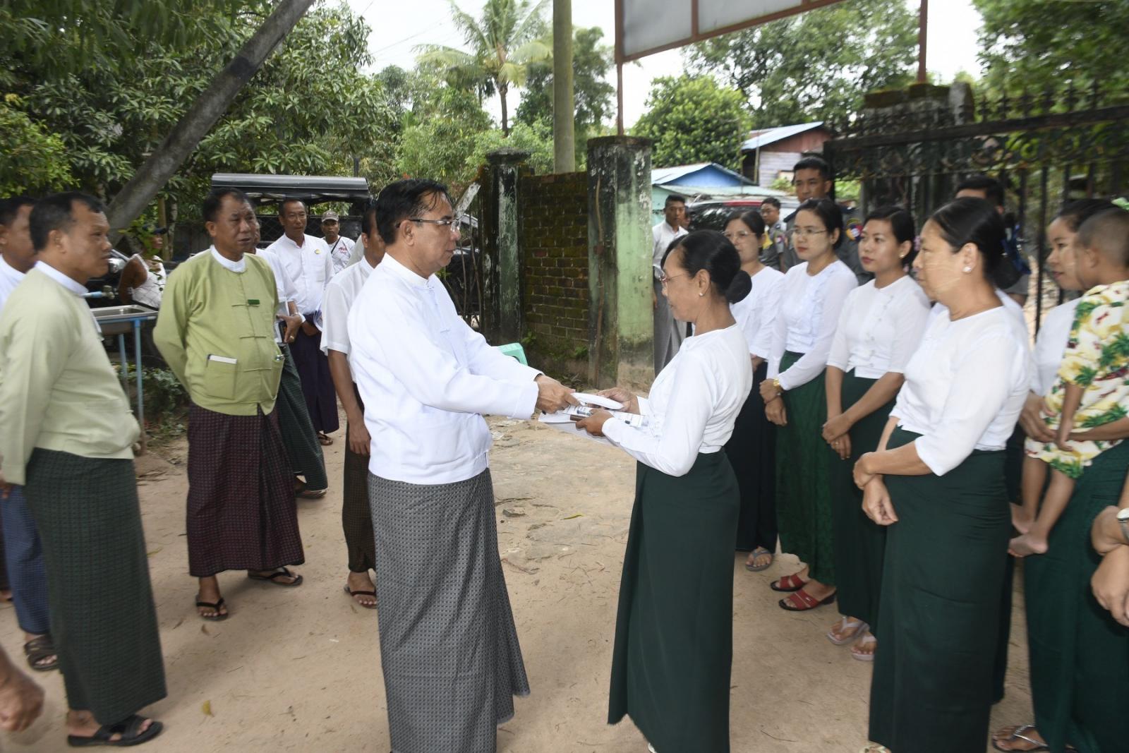 ထို့နောက် တိုင်းဒေသကြီး ဝန်ကြီးချုပ်နှင့် တာဝန်ရှိသူများသည် ဥဿာမြို့သစ်(၅)ရပ်ကွက်ရှိ အခြေခံပညာမူလတန်းလွန်ကျောင်းသို့ရောက်ရှိခဲ့ပြီး အေးချမ်းပျော်ရွှင်စွာ ကျောင်းတွင်းစာမေးပွဲ ဖြေဆိုနေမှုအား ကြည့်ရှုအားပေးခဲ့ပြီး ကျောင်းပတ်ဝန်းကျင် သန့်ရှင်းသာယာလှပစေရေး၊ ဆရာ/ဆရာမ လုံလောက်မှုရှိစေရေးနှင့် ခေတ်မီကလေးကစားကွင်းတစ်ခု တည်ဆောက်ပေးရန် တာဝန်ရှိသူများနှင့် ပေါင်းစပ်ညှိနှိုင်း ဆောင်ရွက်ပေးခဲ့ပြီး ကျောင်းဆရာမများအတွက် သီးခြား ချီးမြှင့်ငွေများ ပေးအပ်ခဲ့သည်။