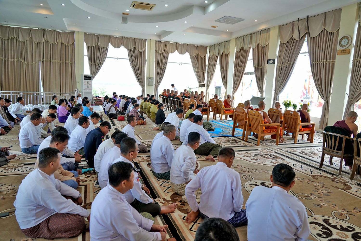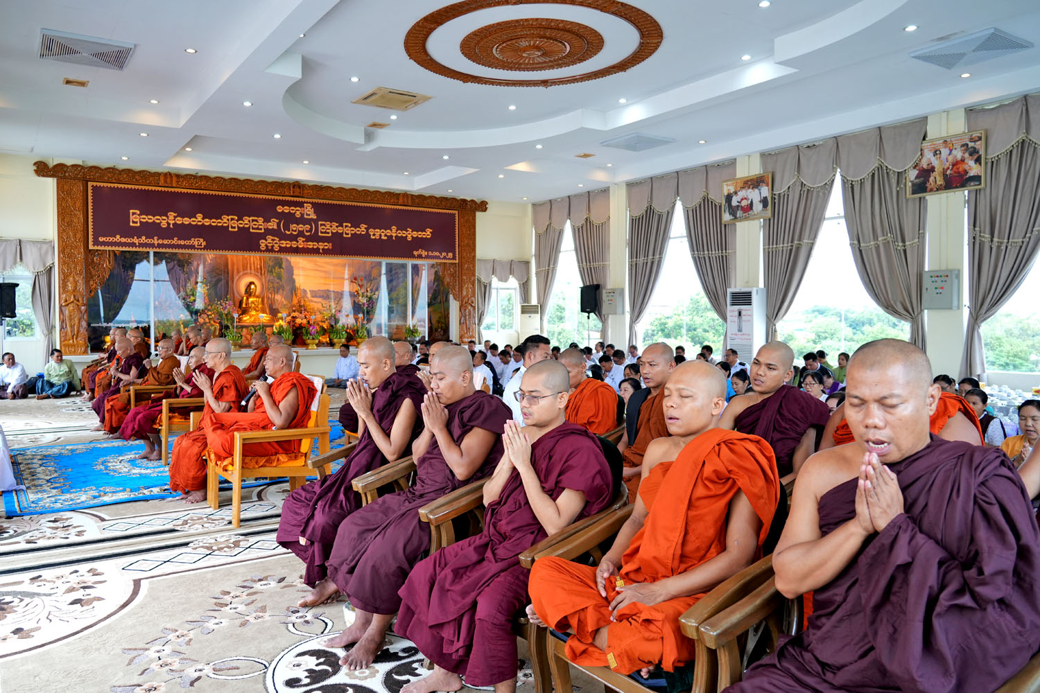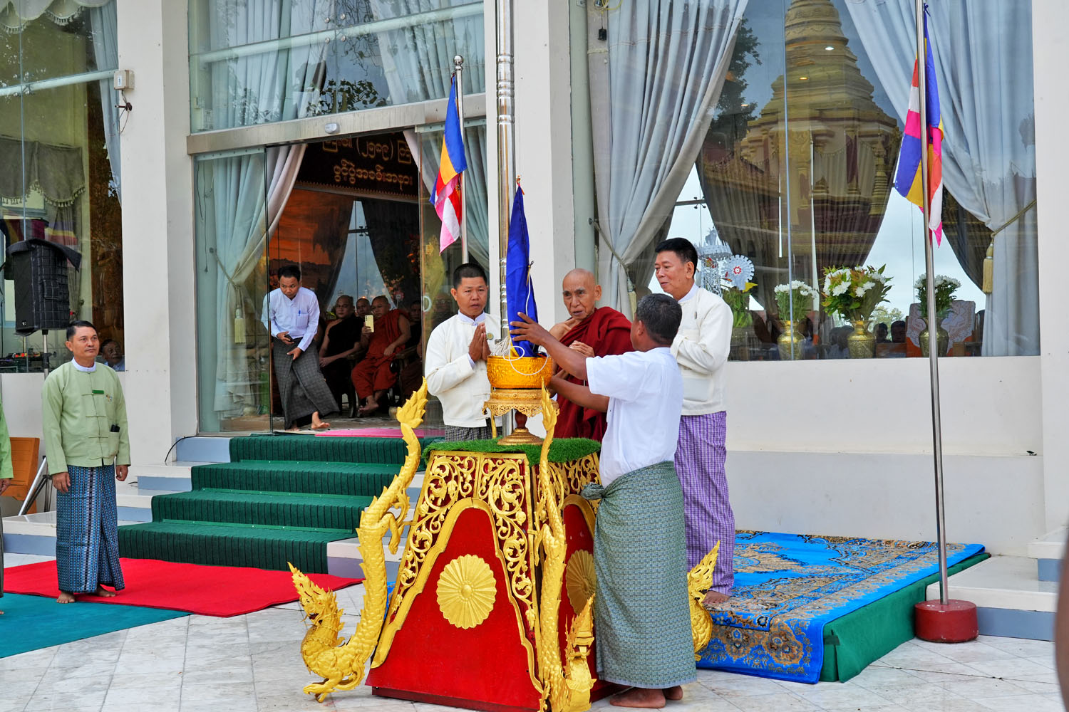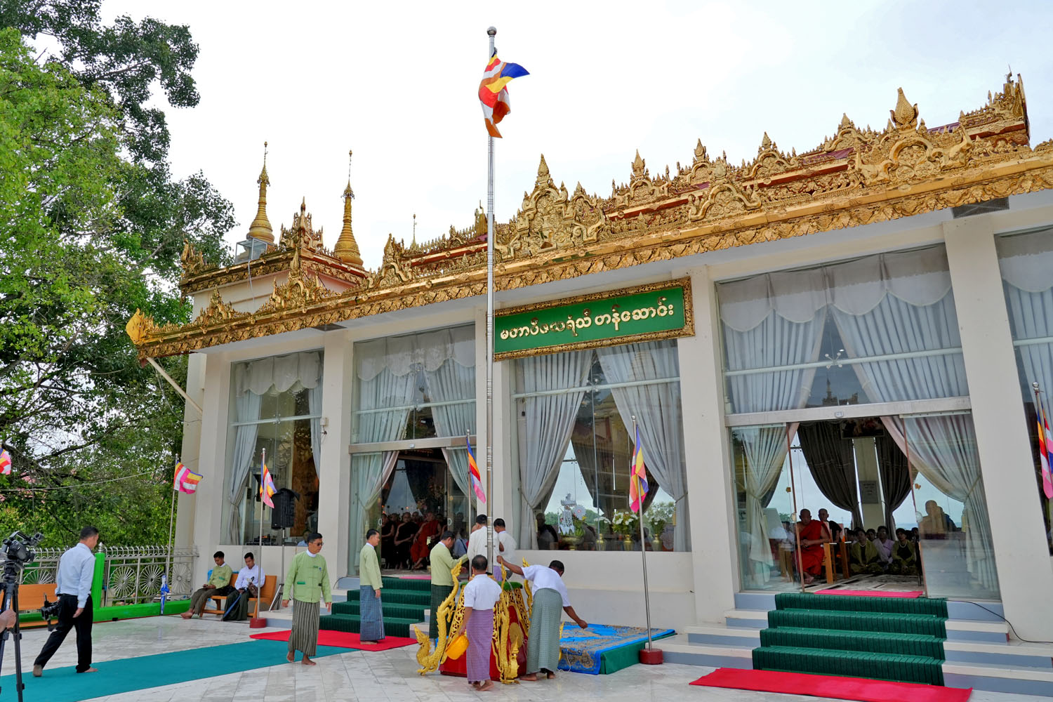 ဦးစွာ မကွေးမြို့ ကန်ဦးရတနာကျောင်းတိုက် ပဓာနနာယက မြသလွန်ဩဝါဒါစရိယဆရာတော် ဘဒ္ဒန္တသုမင်္ဂလက သာသနာ့အလံ တော်ကို အလံတိုင်ထိပ်သို့ လွှင့်တင်ပေးတော် မူကာပင့်သံဃာ အရှင်သူမြတ်များက ဇယန္တော(၂)ဂါထာတော်ကို ရွတ်ပွားသရဇ္ဈာယ်တော် မူခဲ့ကြသည်။
