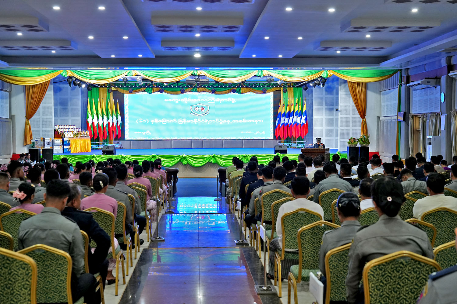ဦးစွာ တိုင်းဒေသကြီးဝန်ကြီးချုပ် ဦးတင့်လွင်က “မြန်မာနိုင်ငံရဲတပ်ဖွဲ့ကို လွတ်လပ်ရေးရပြီးတဲ့ အချိန်ကစလို့ ပြုပြင်ပြောင်းလဲမှုတွေ လုပ်ဆောင်ခဲ့ရာ ၁၉၆၄ ခုနှစ်၊ အောက်တိုဘာ ၁ ရက်နေ့မှာ ပြည်သူ့ရဲတပ်ဖွဲ့ဟု အမည်ပြောင်းလဲခဲ့ပြီး၊ ယင်းနေ့ကို ရဲတပ်ဖွဲ့နေ့ဟု သတ်မှတ်ခဲ့ကြောင်း၊ ၎င်းအပြင် ၁၉၉၅ ခုနှစ်၊ အောက်တိုဘာလ ၁ ရက်နေ့မှစ၍ မြန်မာနိုင်ငံ ရဲတပ်ဖွဲ့အဖြစ် ပြောင်းလဲဖွဲ့စည်းခဲ့ကာ ဒီနေ့မှာဆိုရင် မြန်မာနိုင်ငံရဲတပ်ဖွဲ့နေ့ဟာ (၆၁) နှစ်ပြည့် မြောက်ခဲ့ပြီ ဖြစ်ကြောင်း၊ ပြည်သူ့အကျိုးစီးပွားကို ပိုမိုဆောင်ကြဉ်းနိုင်သည့် ရဲတပ်ဖွဲ့ ပေါ်ပေါက် လာစေရေး အသွင်သဏ္ဍန်ရော၊ အနှစ်သာရပါ ပြောင်းလဲအောင် စီမံဆောင်ရွက်လျက်ရှိကြောင်း၊ ပြည်သူကို ဗဟိုပြုသည့် ရဲလုပ်ငန်းစနစ် ဖော်ဆောင်မှုနှင့်အတူ ရည်မှန်းချက်တာဝန်လေးရပ်ဖြစ်သည့် ပြည်တွင်းလုံခြုံရေးနှင့် ရပ်ရွာအေးချမ်းသာယာရေး၊ တရားဥပဒေစိုးမိုးရေး၊ မူးယစ်ဆေးဝါးအန္တရာယ် တားဆီးကာကွယ်ရေးနှင့် ပြည်သူ့အကျိုးပြုလုပ်ငန်းများ ဆောင်ရွက်လျက်ရှိကြောင်း၊ မြန်မာနိုင်ငံရဲတပ်ဖွဲ့ အစဉ်အလာ (၁၂) ရပ်မှာပါဝင်တဲ့ “နိုင်ငံတော်တွင် အရေးကြုံတိုင်း နောင်တော်တပ်မတော်နှင့် တစ်စိတ်တစ်ဝမ်းတည်းလက်တွဲ၍ ကာကွယ်စောင့်ရှောက်ခဲ့သည့် တပ်ဖွဲ့ဖြစ်သည်” ဆိုတဲ့အစဉ်အလာနှင့် အညီ ၂၀၂၁ ခုနှစ်၊ ဖေဖော်ဝါရီလ (၁) ရက်နေ့ကစပြီး နိုင်ငံတော်တာဝန်ကို တပ်မတော်က ဦးဆောင်တာဝန် ထမ်းဆောင်တဲ့ အချိန်ကစပြီး မြန်မာနိုင်ငံရဲ တပ်ဖွဲ့ကလည်း တပ်မတော်နှင့်အတူ နိုင်ငံတော်ကာကွယ်ရေး တာဝန်များကို ပူးတွဲလိုက်ပါဆောင်ရွက်ခဲ့ကြကြောင်း၊ မကွေးတိုင်းဒေသကြီး ရဲတပ်ဖွဲ့ဝင်များရဲ့ တာဝန်ထမ်းဆောင်မှုကို နိုင်ငံတော်က အလေးထားအသိအမှတ်ပြုတဲ့အနေနဲ့ စွမ်းရည်သတ္တိနှင့် စွမ်းဆောင်မှု ဂုဏ်ပြုတံဆိပ်များကို စိစစ်ချီးမြှင့်ပေးခြင်းဖြင့် တပ်ဖွဲ့ဝင်များရဲ့ စိတ်ဓာတ်နှင့် စွမ်းရည်မြှင့်တင်ရေးကိုပါ ဆောင်ရွက်ပေးလျက်ရှိပါကြောင်း၊ မကွေးတိုင်းဒေသကြီးရဲတပ်ဖွဲ့ဝင်များရဲ့ တာဝန်ထမ်းဆောင်မှုကို နိုင်ငံတော်က အလေးထား အသိအမှတ်ပြုတဲ့အနေနဲ့ စွမ်းရည်သတ္တိနှင့် စွမ်းဆောင်မှုဂုဏ်ပြုတံဆိပ်များကို အခါအားလျော်စွာ စိစစ်ချီးမြှင့်ပေးခြင်းဖြင့် တပ်ဖွဲ့ဝင်များရဲ့ စိတ်ဓာတ်နှင့် စွမ်းရည်မြှင့်တင်ရေးကိုပါ ဆောင်ရွက်ပေးလျက်ရှိကြောင်း၊ မကွေးတိုင်းဒေသကြီး ရဲတပ်ဖွဲ့မှာ စွမ်းစွမ်းတမံ တာဝန်ထမ်းဆောင်ခဲ့တဲ့ တပ်ဖွဲ့ဝင်များကို ချီးမြှင့်မှုအနေနဲ့ ၂၀၂၁ ခုနှစ်မှာ ရဲတပ်ဖွဲ့ဝင် (၂၄) ဦးကို ရဲချုပ်၏ အမှုထမ်းကောင်း လက်မှတ် (၂၄) ဆု ဂုဏ်ပြုချီးမြှင့်ခဲ့ပြီး ၂၀၂၂ ခုနှစ်မှာလည်း ရဲတပ်ဖွဲ့ဝင်(၂ဝ၉)ဦးကို နိုင်ငံတော်