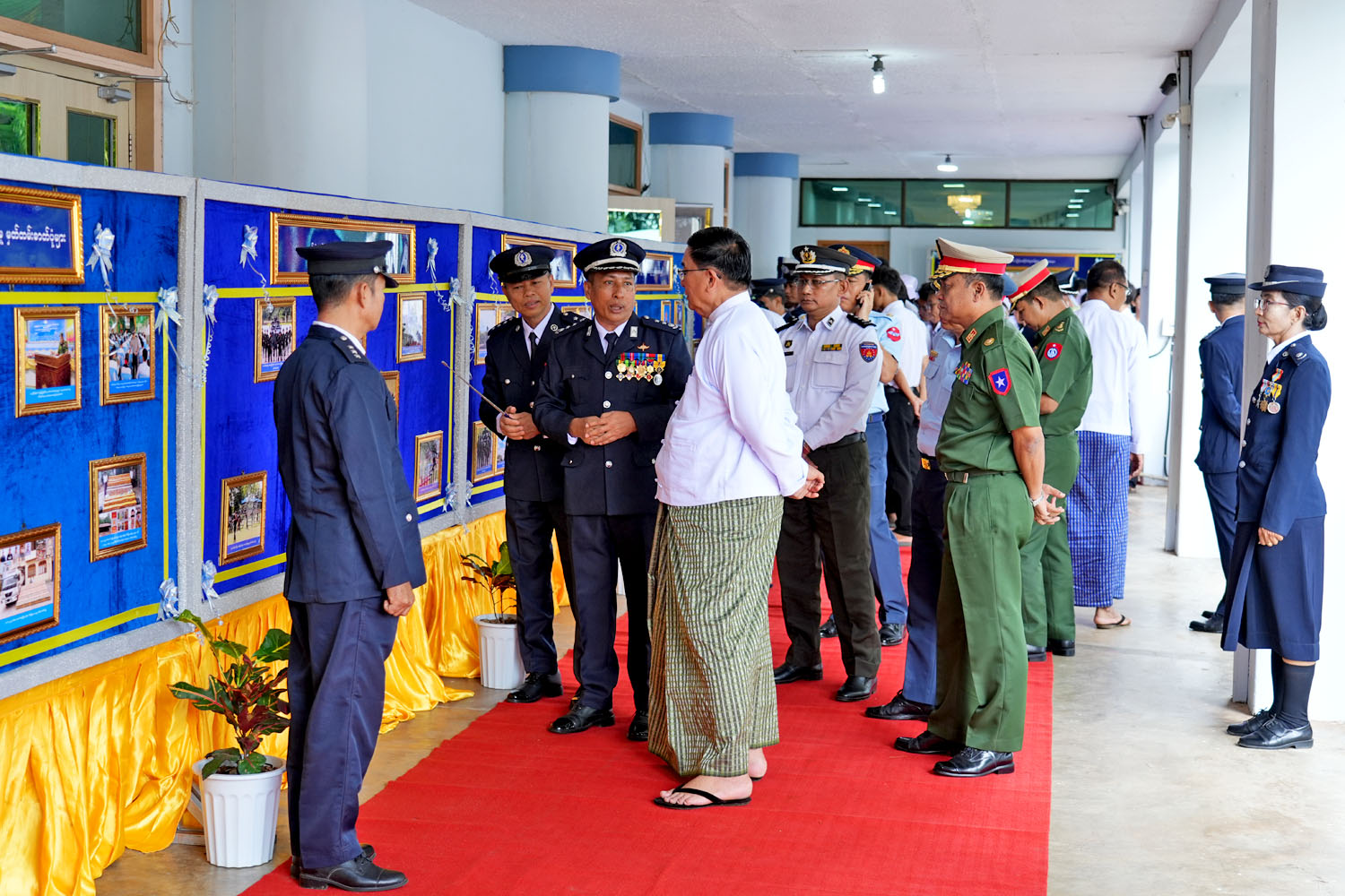 ယင်းနောက် (၆၁) နှစ်မြောက် မြန်မာနိုင်ငံရဲတပ်ဖွဲနေ့ အထိမ်းအမှတ် Video Clip ပြသခြင်း အစီအစဉ် ဆောင်ရွက်ခဲ့ပြီး၊ မှတ်တမ်းဓာတ်ပုံရိုက်ကူးကာ၊ (၆၁) နှစ်မြောက် မြန်မာနိုင်ငံရဲတပ်ဖွဲ့နေ့ အထိမ်းအမှတ် ခင်းကျင်းပြသထားသော ပြခန်းအား တိုင်းဒေသကြီးဝန်ကြီးချုပ်နှင့် အကြီးအကဲများက လှည့်လည် ကြည့်ရှုခဲ့ကြကြောင်း သိရသည်။