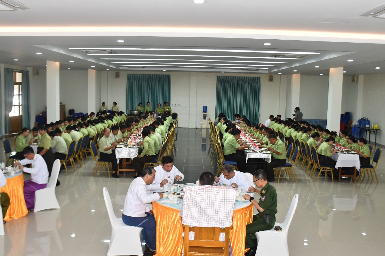 ပြည်ထဲရေးဝန်ကြီးဌာန၊ အထွေထွေအုပ်ချုပ်ရေးဦးစီးဌာန၊ မွန်ပြည်နယ် အထွေထွေ အုပ်ချုပ်ရေးဦးစီးဌာန ဝန်ထမ်းများအား ချစ်ကြည်ရင်းနှီးသောအားဖြင့် ဝန်ထမ်းများနှင့် အထူးနေ့လယ်စာ စားပွဲကို ယနေ့နံနက်ပိုင်းက ပြည်နယ်အစိုးရအဖွဲ့ရုံး၊ ရာမညခန်းမ၌ ကျင်းပပြုလုပ်ရာ မွန်ပြည်နယ် ဝန်ကြီးချုပ် ဦးအောင်ကြည်သိန်းနှင့် ပြည်နယ်ဝန်ကြီးများ သည် နိုင်ငံတော်မှ ပေးအပ်သောလုပ်ငန်းတာဝန်များနှင့်ဌာနမှပေးအပ်သော တာဝန်များကို ကျေပွန်စွာ ဆောင်ရွက်ကြပြီး နိုင်ငံတော်အတွက် ဝန်ထမ်းကောင်းများဖြစ်အောင် စေတနာ၊ အနစ်နာ၊ ဝါသနာတို့ဖြင့် ကျန်းမာရွှင်လန်းစွာဖြင့်တာဝန်များအားထမ်းဆောင်ကြသည့် မွန်ပြည်နယ်အထွေထွေအုပ်ချုပ်ရေးဦးစီးဌာန ဝန်ထမ်းများနှင့် အထူးနေ့လယ်စာအား အတူတကွ သုံဆောင်ခဲ့ကြသည်။