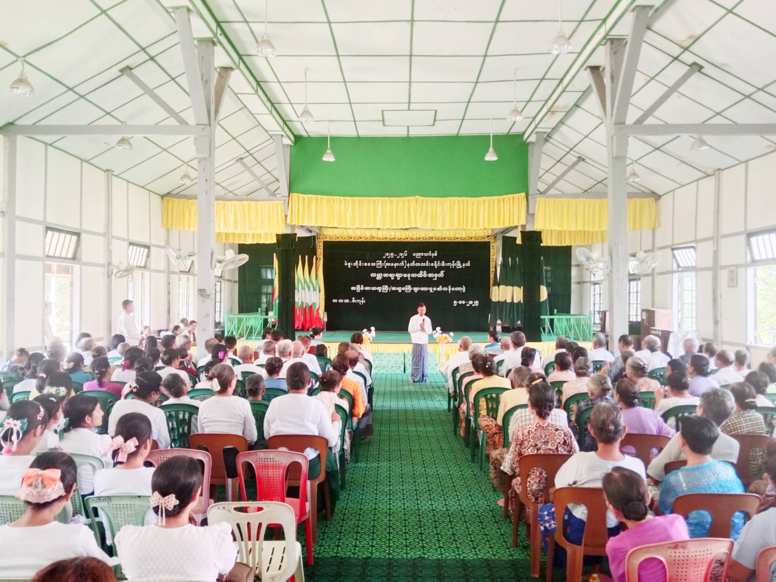 ရှေးဦးစွာ မြို့နယ်စီမံခန့်ခွဲရေးနှင့်အုပ်ချုပ်ရေးကော်မတီဥက္ကဌ ဦးမျိုးသက်အောင်က ပြည်ထောင်စုသမ္မတမြန်မာနိုင်ငံတော် ယာယီသမ္မတ နိုင်ငံတော်လုံခြုံရေးနှင့် အေးချမ်းသာယာရေးကော်မရှင်ဥက္ကဌ ဗိုလ်ချုပ်မှူးကြီး သတိုးမဟာသရေစည်သူသတိုးသီရိသုဓမ္မ မင်းအောင်လှိုင်မှ ၂၀၂၅ခုနှစ် ကမ္ဘာ့ဆရာများနေ့ အထိမ်းအမှတ်အခမ်းအနားသို့ ပေးပို့သည့် သဝဏ်လွှာကို ဖတ်ကြားသည်။