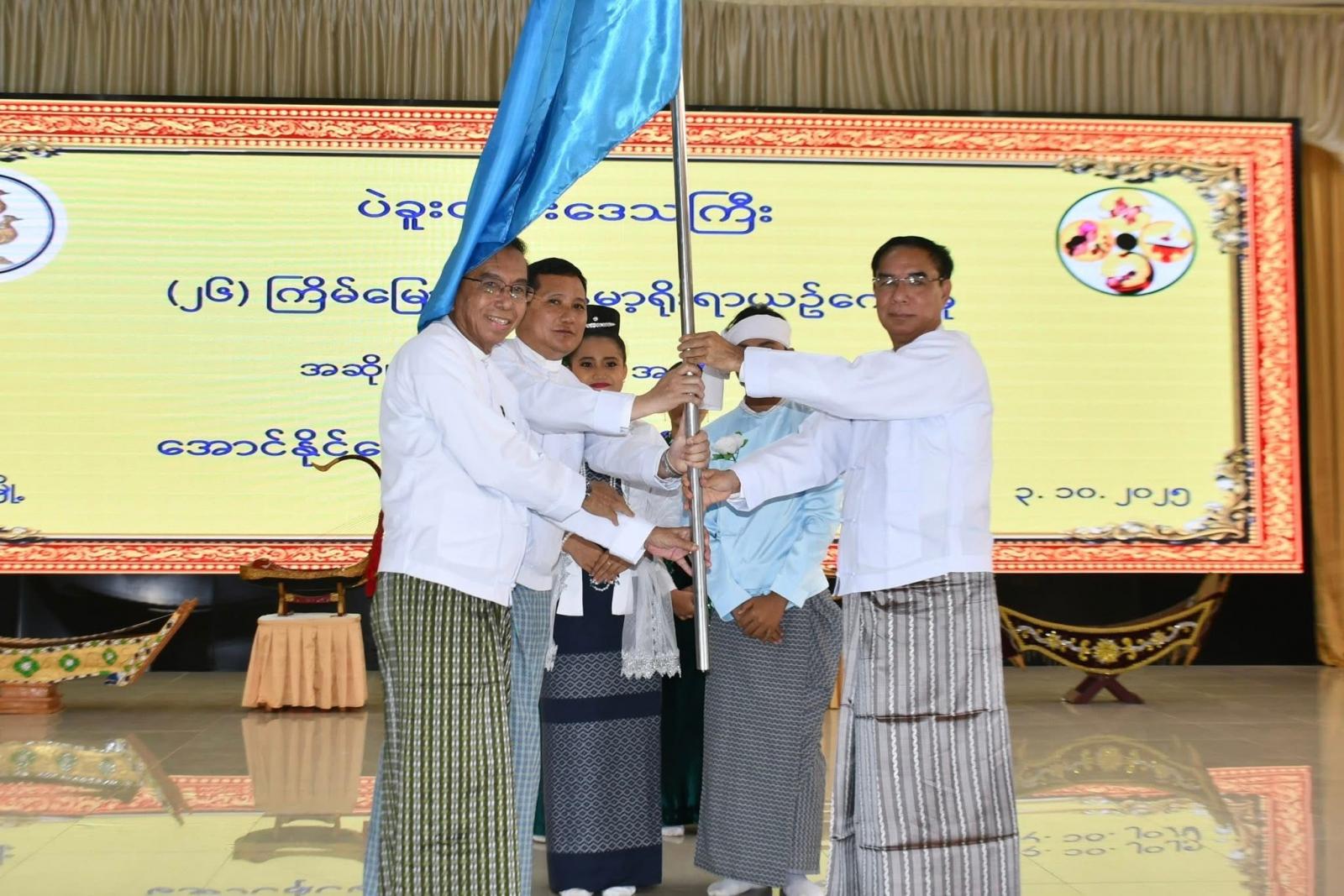 ပဲခူးမြို့၊ မြို့တော်ခန်းမ၌ ယမန်နေ့မွန်းလွဲပိုင်းက ၂၀၂၅ ခုနှစ်၊ (၂၆)ကြိမ်မြောက် မြန်မာ့ရိုးရာယဉ်ကျေးမှု အဆို၊ အက၊ အရေး၊ အတီးပြိုင်ပွဲသို့ ပဲခူးတိုင်းဒေသကြီးကိုယ်စားပြု သွားရောက်ယှဉ်ပြိုင်မည့်အဖွဲ့အား အောင်နိုင်ရေးအလံပေးအပ်ခြင်း အခမ်းအနား ကျင်းပပြုလုပ်ခဲ့ရာ ပဲခူးတိုင်း ဒေသကြီးဝန်ကြီးချုပ် ဦးမျိုးဆွေဝင်းနှင့်ဇနီး ဒေါ်စိုးစိုးသက်တို့ တက်ရောက်ချီးမြှင့်ခဲ့ကြောင်း သိရသည်။