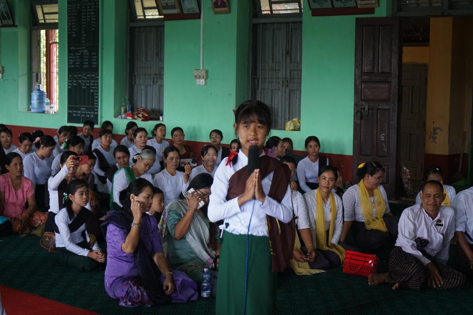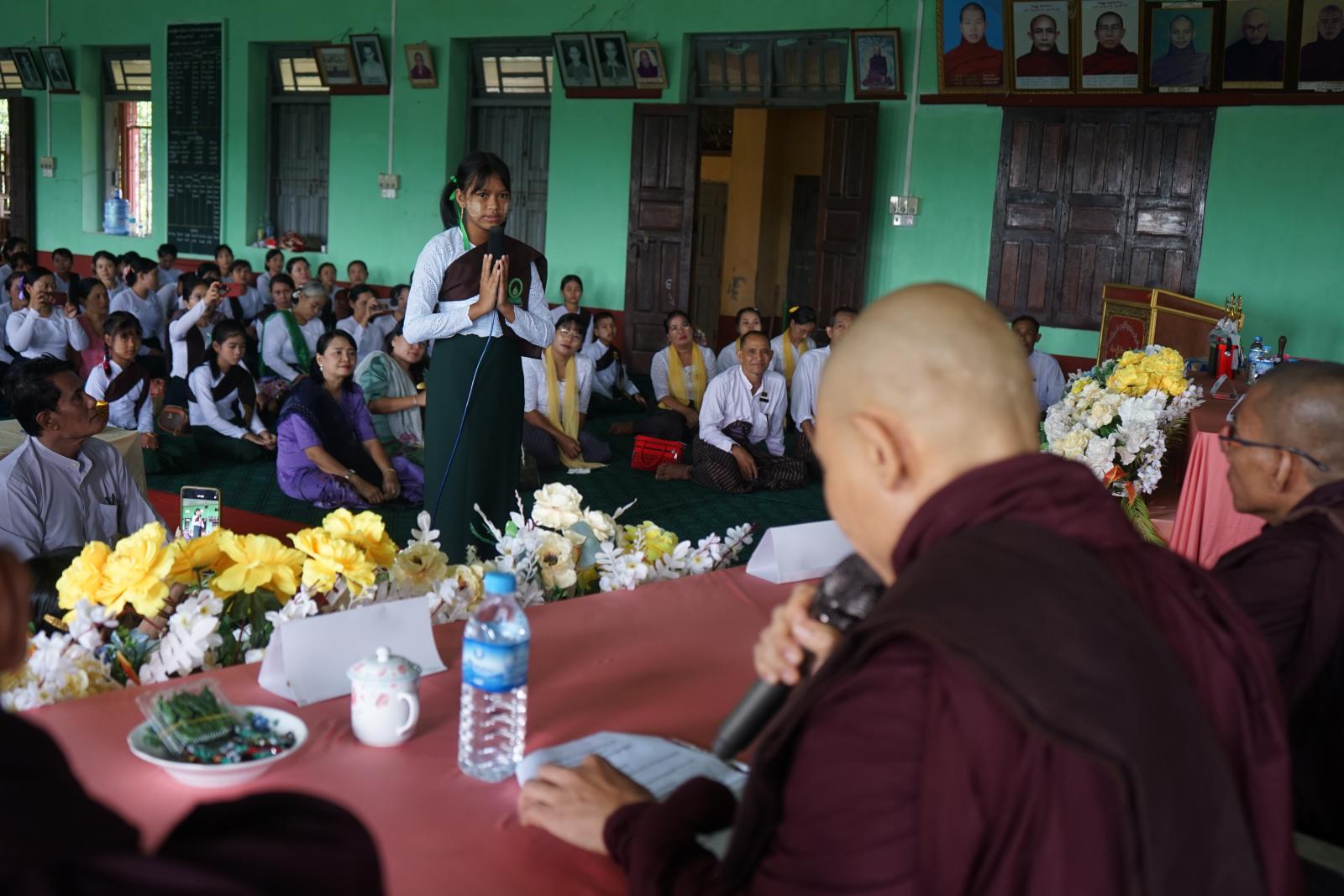 အခမ်းအနားတွင် ဗဟိုဗုဒ္ဓဘာသာကလျာဏယုဝအသင်း (YMBA) ဒုဥက္ကဋ္ဌ ဦးကြည်သိန်း၊ ပြည်နယ် ဗုဒ္ဓဘာသာကလျာဏယုဝအသင်း(YMBA)ဥက္ကဋ္ဌ ဦးအောင်မိုးနှင့် မြို့နယ်ပညာရေးမှူး ဦးလှဋ္ဌေးတို့မှ သာသနာရေးဆိုင်ရာများတင်ပြလျောက်ထားခဲ့ကြပြီး ယဉ်ကျေးလိမ္မာ(၃၈)ဖြာမင်္ဂလာနှင့် ဗုဒ္ဓဝင်မြန်မာဘာသာဖြင့် နှုတ်ဖြေပြိုင်ပွဲကို အကဲဖြတ်အမှတ်ပေးဒိုင်အဖြစ် ဆရာတော် (၁၀) ပါး မှဆောင်ရွက်သည်။