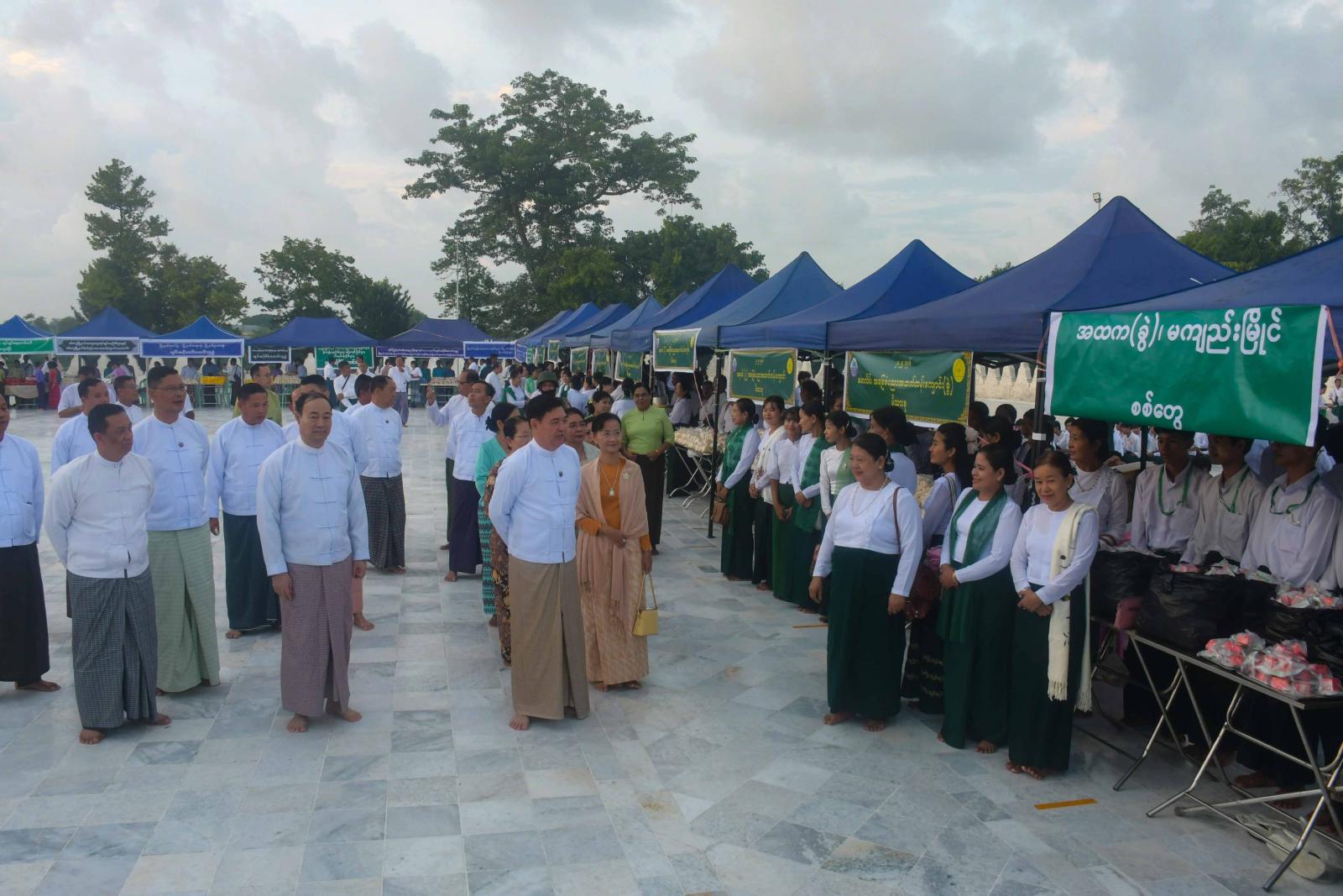 ဆက်လက်၍ ပြည်နယ်ဝန်ကြီးချုပ်နှင့်ဇနီး တာဝန်ရှိသူများသည် ဆွမ်းဆန်တော်လောင်း လှူရန်ရောက်ရှိနေကြသည့် ဌာနဆိုင်ရာများ၊ စီးပွားရေးလုပ်ငန်းရှင်များ၊ ရပ်ကွက်အုပ်ချုပ်ရေးမှူးများ၊ လှူမှုရေးအဖွဲ့အစည်းများ၊ အခြေခံပညာကျောင်းများမှ ဆရာ၊ ဆရာမများနှင့် စေတနာရှင်အလှူရှင်များက ဆွမ်းဆန်တော်လောင်းလှူရန် ပြင်ဆင်နေမှုကို လှည့်လည်ကြည့်ရှုပြီး ရင်းရင်း နှီးနှီး လိုက်လံနှုတ်ဆက်အားပေးကြသည်။