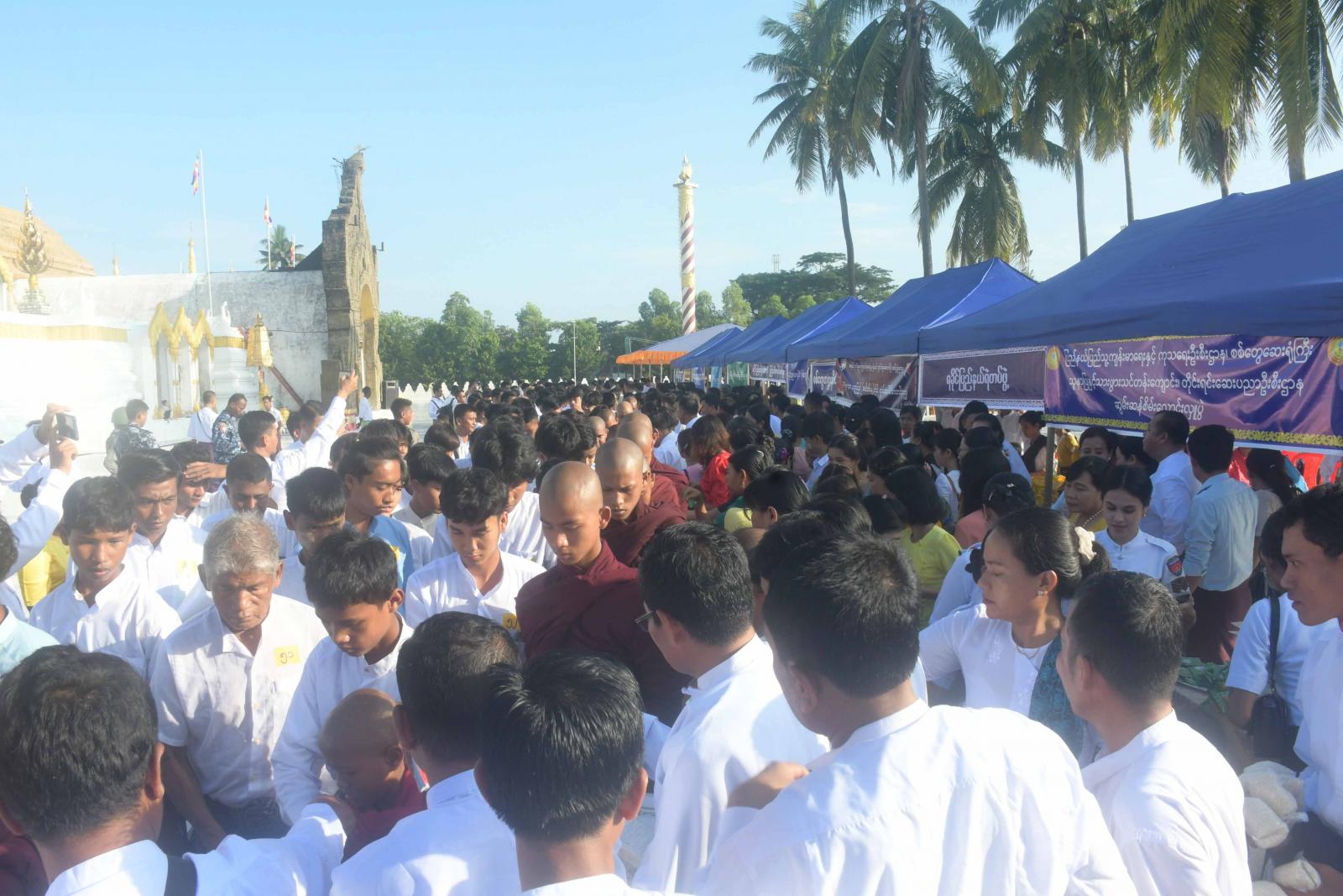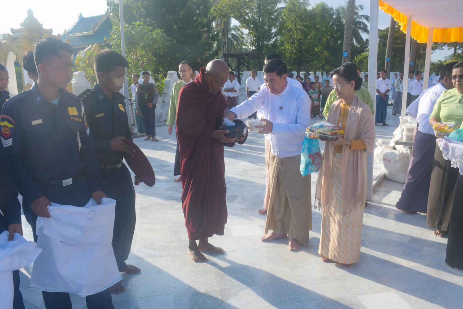 ထို့နောက် ပြည်နယ်ဝန်ကြီးချုပ်နှင့်ဇနီး၊ တိုင်းမှူးနှင့် ပြည်နယ်အစိုးရအဖွဲ့ဝင်များက ဦးဆောင်ကာ ကြွရောက်တော်မူကြသော ထေရ်ကြီး၊ ဝါကြီးဆရာတော်ကြီးများနှင့် သံဃာတော်များအား ဆွမ်းဆန်တော်နှင့် လှူဖွယ်ပစ္စည်းများကို လောင်းလှူကြသည်။ ဆွမ်းဆန်တော်လောင်းလှူပွဲသို့ စစ်တွေမြို့ပေါ်ရှိ ထေရ်ကြီး၊ ဝါကြီးဆရာတော်ကြီးများ၊ ကျောင်းတိုက်အသီးသီးမှ ရဟန်း၊ သံဃာများနှင့် သာမဏေများ၊ သီလရှင်များကြွရောက်တော်မူကြပြီး ဆွမ်းဆန်တော်များ အလှူခံကြသည်။