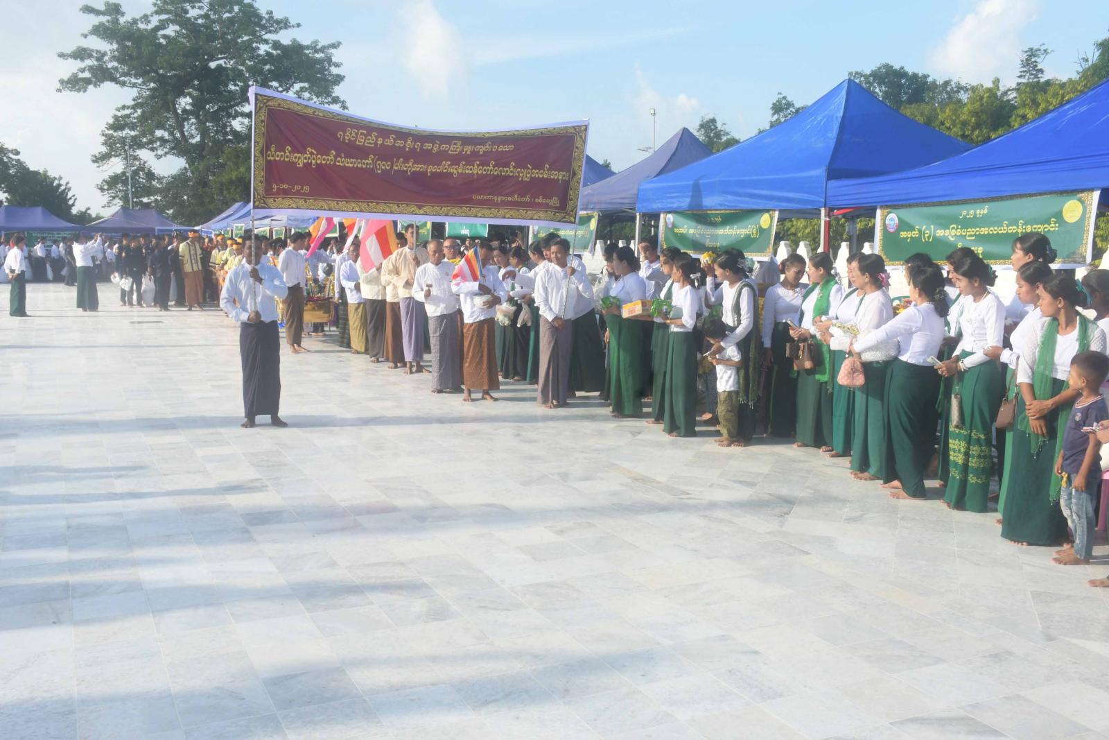 ဆက်လက်၍ မြို့နယ်ဩဝါဒါစရိယ၊ စစ်တွေမြို့၊ ပညာလင်္ကာရကျောင်းတိုက် ပဓာန နာယက အဂ္ဂမဟာဂန္ထဝါစကပဏ္ဍိတ ဘဒ္ဒန္တနာဂိန္ဒ မဟာထေရ်မြတ်ထံမှ ပြည်နယ်ဝန်ကြီးချုပ် အမှူးပြုသော ဧည့်ပရိတ်သတ်များက အနုမောဒနာ တရားနာယူ၍ လှူဒါန်းမှုအစုစုအတွက် ရေစက်သွန်းချ အမျှပေးဝေခဲ့ကြသည်။