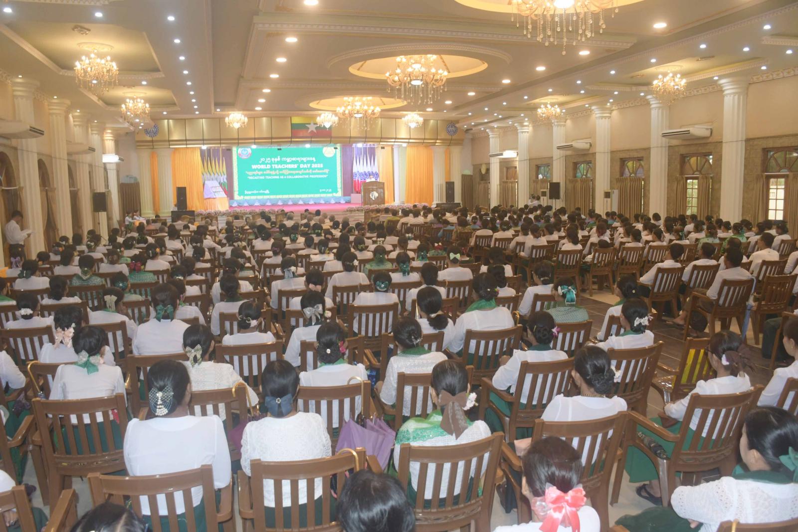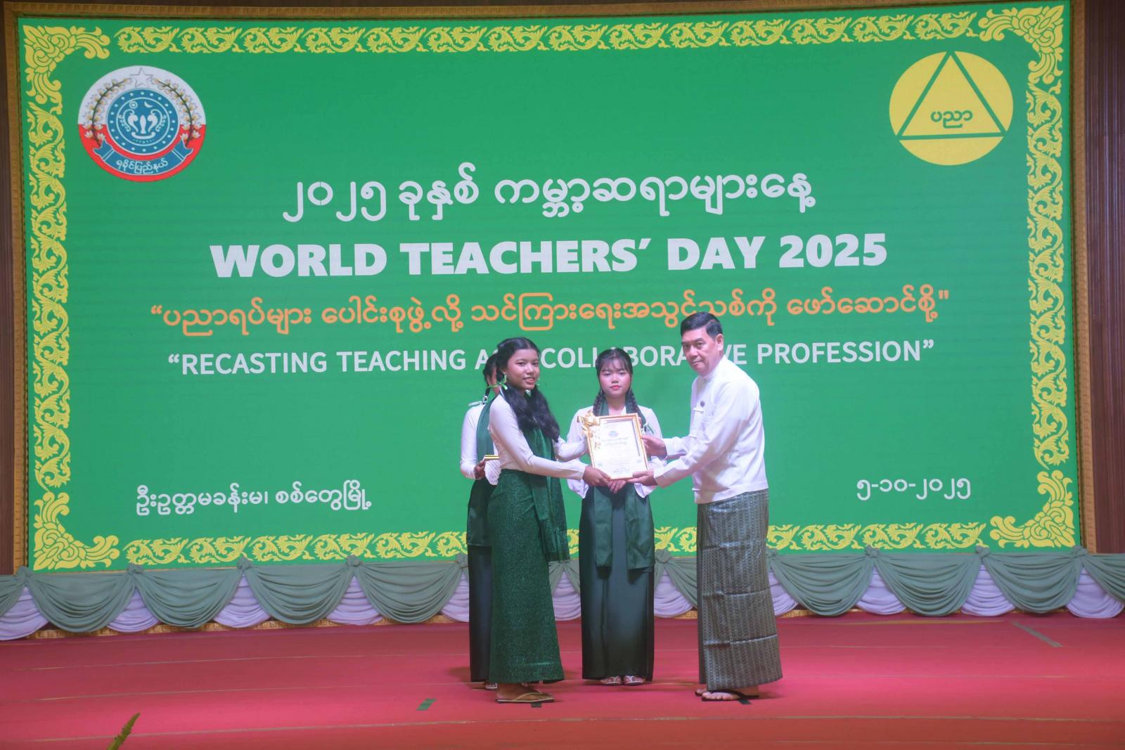 နေ့လယ်ပိုင်းတွင် ရခိုင်ပြည်နယ်ဝန်ကြီးချုပ် သည် စစ်တွေမြို့ ဦးဥတ္တမခန်းမ၌ ကျင်းပသော ၂၀၂၅ ခုနှစ် ကမ္ဘာ့ဆရာများနေ့အခမ်းအနားသို့တက်ရောက်သည်။ ဦးစွာ အမှတ်(၁) အခြေခံပညာ အထက်တန်းကျောင်းမှ မြတ်ဆရာပူဇော်ပွဲတက်ရောက်ပြီး ပြည်ထောင်စုသမ္မတမြန်မာနိုင်ငံတော် ယာယီသမ္မတ နိုင်ငံတော်လုံခြုံရေးနှင့် အေးချမ်းသာယာရေးကော်မရှင်ဥက္ကဋ္ဌ၊ ဗိုလ်ချုပ်မှူးကြီး သတိုးမဟာသရေစည်သူ သတိုးသီရိသုဓမ္မ မင်းအောင်လှိုင်ထံမှ ကမ္ဘာ့ဆရာများနေ့အထိမ်းအမှတ် အခမ်းအနားသို့ပေးပို့သည့် သဝဏ်လွှာအား ရခိုင်ပြည်နယ်ဝန်ကြီးချုပ်က ဖတ်ကြားသည်။ ဆက်လက်ပြည်နယ်ပညာရေးမှူးက ကမ္ဘာ့ကုလသမဂ္ဂ လက်အောက်ခံအဖွဲ့(၅)ဖွဲ့၏ အဖွဲ့ခေါင်းဆောင်များက ပေးပို့လာသော စုပေါင်း သဝဏ်လွှာကို ဖတ်ကြားသည်။ ဆက်လက်၍ ပြည်နယ်ဝန်ကြီးချုပ်နှင့်ဇနီး၊ ပြည်နယ်အစိုးရအဖွဲ့ဝင်များက ကမ္ဘာ့ဆရာများနေ့ အထိမ်းအမှတ် ပြိုင်ပွဲများတွင် ဆုရရှိကြသည့် ကျောင်းသား၊ ကျောင်းသူများအား ဆုများပေးအပ် ချီးမြှင့်ကြပြီး အခြေခံပညာ ဆရာ၊ ဆရာမများက မြတ်ဆရာသီချင်းဖြင့် ဂုဏ်ပြုသီဆိုကြသည်။