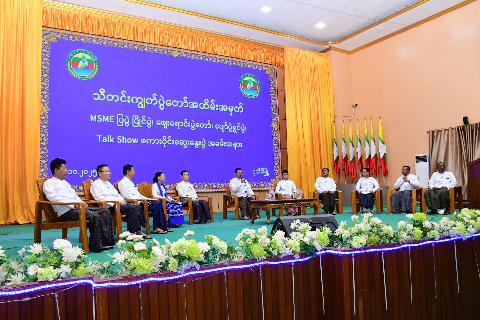 ဆက်လက်၍ MSME Talk Show စကားဝိုင်းဆွေးနွေးပွဲကို ပြုလုပ်ရာ ပုသိမ်တက္ကသိုလ် ပါမောက္ခချုပ်က Moderator အဖြစ်လည်းကောင်း၊ စားသုံးသူရေးရာဦးစီးဌာန၊ အသေးစားစက်မှု လက်မှုလုပ်ငန်းဦးစီးဌာန၊ မြန်မာ့စီးပွားရေးဘဏ်၊ ဆန်စက်လုပ်ငန်းရှင်များအသင်း၊ စိုက်ပျိုးရေး ဦးစီးဌာန၊ အစားအသောက်နှင့် ဆေးဝါးကွပ်ကဲရေးဦးစီးဌာန၊ စက်မှုကြီးကြပ်ရေးနှင့်စစ်ဆေးရေး ဦးစီးဌာန၊ မြန်မာ့လယ်ယာဖွံ့ဖြိုးရေးဘဏ်၊ ဧရာဝတီတိုင်းဒေသကြီးကုန်သည်များနှင့် စက်မှုလက်မှု လုပ်ငန်းရှင်များအသင်းနှင့် မွေးမြူရေးနှင်ကုသရေးဦးစီးဌာနတို့မှ Panellists အဖြစ်လည်းကောင်း ပါဝင်ဆောင်ရွက်ခဲ့ပြီး ဆွေးနွေးပွဲသို့တက်ရောက်လာသူများ၏ မေးမြန်းမှုများအား တာဝန်ရှိသူများက ပြန်လည်ရှင်းလင်းဆွေးနွေးခဲ့ကြောင်း သိရသည်။