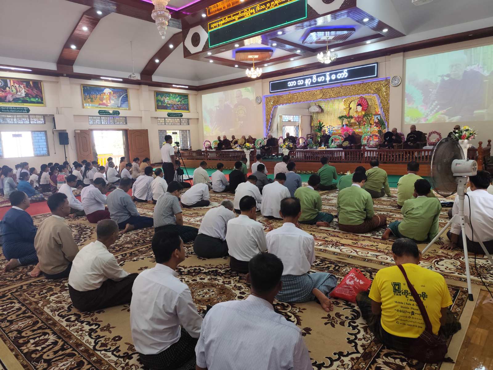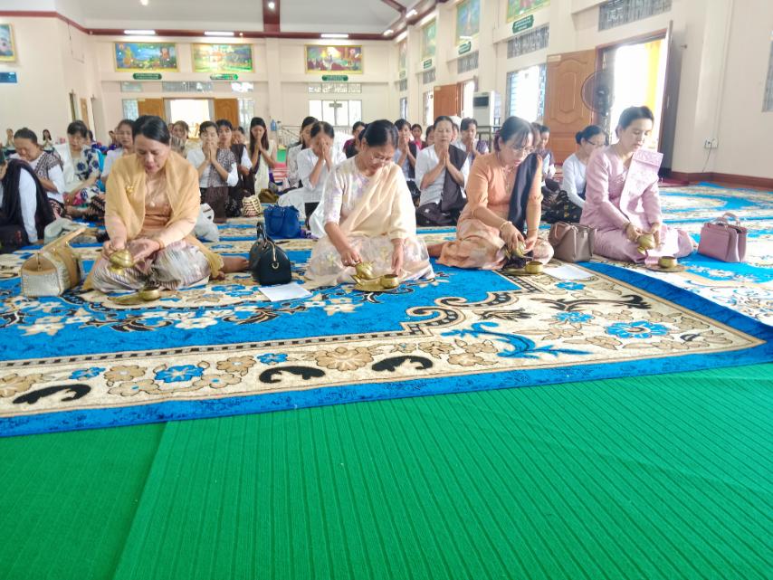 အခမ်းအနားတွင် အေးရိပ်သာမဟာစည် မန္တလေးကျောင်းတိုက် သြဝါဒစရိယ ဆရာတော် ဘဒ္ဒန္တဝိသုတာစာရထံမှ ငါးပါးသီလခံယူဆောက်တည်ကာ ဆရာတော်ကြီးများက မေတ္တသုတ်ပရိတ်တရားတော်ဖြင့် ချီးမြှင့်ကာ ကြွရောက်တော်မူကြသည့် ဆရာတော်ကြီးများအား လှူဖွယ်ဝတ္တုအစုစုတို့ကို မွန်ပြည်နယ်တိုင်းရင်းသားရေးရာဝန်ကြီး ဦးခင်မောင်ဦး၊ ပြည်နယ်ဥပဒေချုပ် ဦးမြင့်အောင်၊ သံဖြူဇရပ်တပ်နယ်မှူး ဗိုလ်မှူးချုပ်ထွန်းနိုင်ဦးနှင့် မြို့နယ်စီမံခန့်ခွဲရေးနှင့် အုပ်ချုပ်ရေးကော်မတီဥက္ကဋ္ဌ ဦးအောင်မိုးလွင်နှင့်အဖွဲ့ဝင်များ၊ ဂေါပကအဖွဲ့နှင့်အလှူရှင်များမှ ဆက်ကပ်လှူဒါန်းပြီး လှူဒါန်းမှုအစုစုတို့အတွက် ရေစက်ချအမျှဝေသည်။