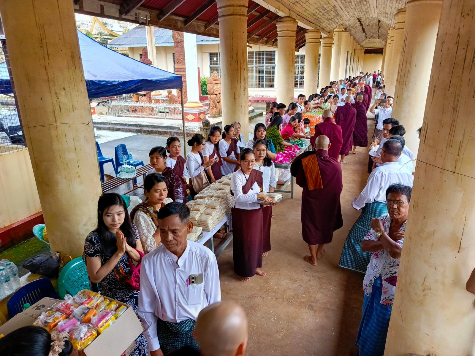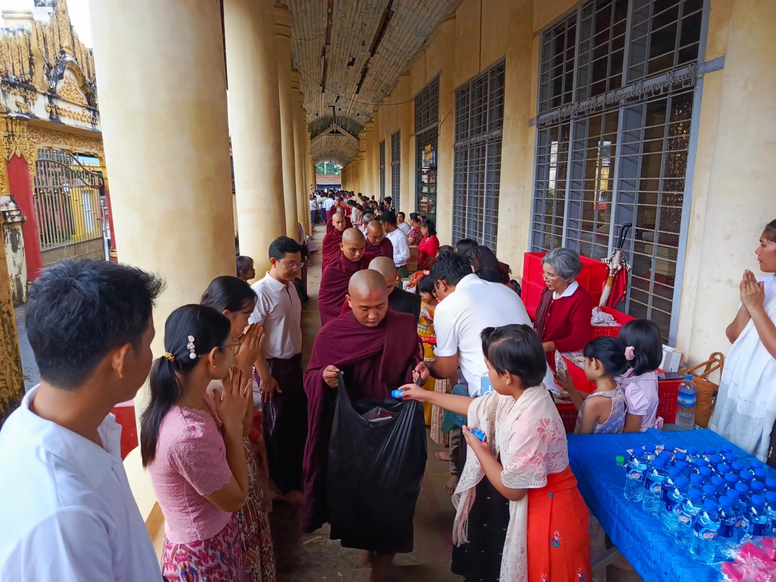 ယင်းနောက် ပဝါရဏာပြုတော်မူကြသည့် သံဃာတော်များအား မြို့နယ်စီမံခန့်ခွဲရေးနှင့် အုပ်ချုပ်ရေးကော်မတီ ဥက္ကဋ္ဌ ဦးဇော်မိုးစိုး၊ ခရိုင်နှင့်မြို့နယ်စီမံခန့်ခွဲရေးနှင့် အုပ်ချုပ်ရေးကော်မတီဝင်များ၊ ဌာနဆိုင်ရာများ၊ မြို့သူမြို့သား စေတနာရှင်အလှူရှင်များစုပေါင်းကာ စာရေးတံမဲများ ဆက်ကပ်ခြင်း၊ ဆွမ်းဆန်စိမ်းနှင့် လှူဖွယ်များ စုပေါင်းလောင်းလှူပူဇော်ခြင်းတို့ကို ပြုလုပ်ခဲ့ကြသည်။