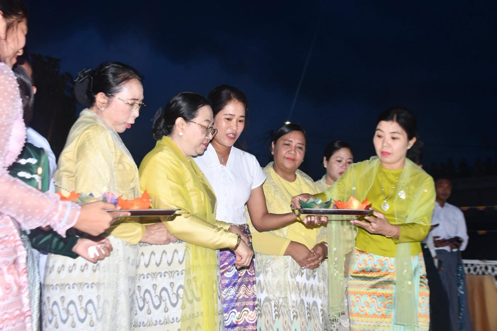 ယင်းနောက် တိုင်းဒေသကြီးဝန်ကြီးချုပ်နှင့် ဇနီးတို့သည် ခူးမြို့၊ ဇိုင်းဂနိုင်းမြောက်ပိုင်းရပ်ကွက်၊ ပဲခူးမြစ်၌ ကျင်းပပြုလုပ်သည့် ဒုတိယအကြိမ်မြောက် မြန်မာ့ရိုးရာယဉ်ကျေးမှု သီတင်းကျွတ် မီးမျှောပူဇော်ပွဲတော်အား ပဲခူးတိုင်းဒေသကြီးအစိုးရအဖွဲ့၊ ဝန်ကြီးချုပ်ဦးမျိုးဆွေဝင်း၊ လုံခြုံရေးနှင့်နယ်စပ်ရေးရာဝန်ကြီး၊ စီးပွားရေးရာဝန်ကြီး၊ တာဝန်ရှိသူတို့က ဖဲကြိုးဖြတ်ဖွင့်လှစ်ပေးခဲ့ကြပြီး ရပ်ကွက်နေပြည်သူများနှင့်အတူ မြတ်ဗုဒ္ဓထံရည်မှန်း၍ မီးကြာခွက် (၂၀၀၀)အား မီးမျှောပူဇော်ခဲ့ကြသည်။