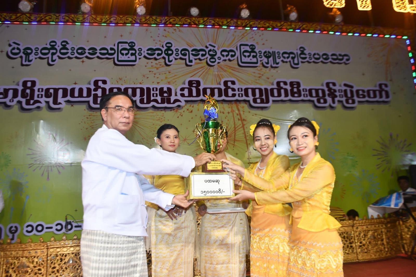 ထို့နောက် ပဲခူးတိုင်းဒေသကြီးဝန်ကြီးချုပ် ဦးမျိုးဆွေဝင်းနှင့် ဇနီးဒေါ်စိုးစိုးသက်၊ တရားလွှတ်တော်တရားသူကြီး၊ အစိုးရအဖွဲ့ဝင်ဝန်ကြီးများနှင့် တာဝန်ရှိသူများက MSMEs လယ်ယာသုံးစက်ကိရိယာ ပစ္စည်းထုတ်ကုန်များပြိုင်ပွဲနှင့် ယိမ်းပြိုင်ပွဲဆုရရှိသူများအား ဂုဏ်ပြုမှတ်တမ်းနှင့် ဂုဏ်ပြုဆုများ ထိုက်ထိုက်တန်တန်ချီးမြှင့်ပေးအပ်ခဲ့ပြီး ပဲခူးမြို့၊ သီတင်းကျွတ်မီးထွန်းပွဲတော်သို့ လာရောက်လည်ပတ်အားပေးသည့် ဧည့်ပရိသတ်များအား နိုင်ငံကျော်အဆိုတော်များ၊ ရုပ်ရှင်၊ သဘင်၊ ဂီတအနုပညာရှင်များက တေးသီချင်း များဖြင့် ဖျော်ဖြေတင်ဆက်ပေးခဲ့ကြောင်း သတင်းရရှိသည်။