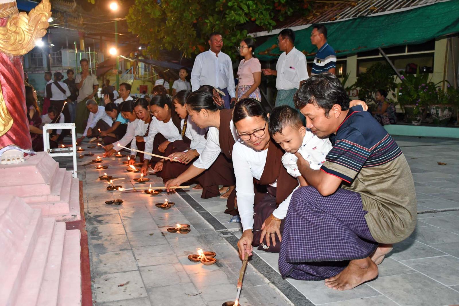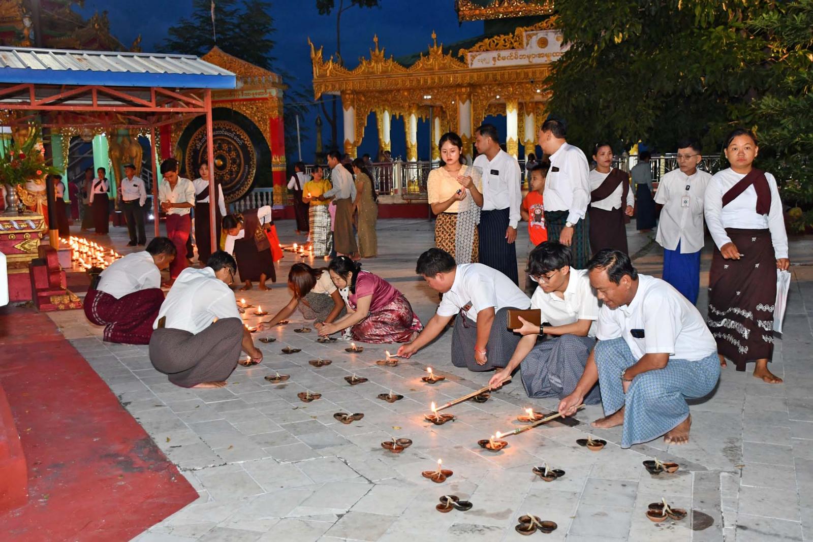 ထို့အတူ သီတင်းကျွတ်ကာလ အစိုးရရုံးပိတ်ရက်များနှင့် သီတင်းကျွတ်လပြည့် (အဘိဓမ္မာအခါတော်နေ့)တွင် မြို့နယ်အတွင်းရှိ နဂါးပွက်တောင်၊ ရှင်မင်းပူးဘုရား၊ မန်းရွှေစက်တော်ဘုရားကြီးနှင့် ရှင်ပင်ချမ်းသာကြီးဘုရားစသည့် အထင်ကရနေရာများနှင့် ဘုရားကျောင်းကန်စေတီပုထိုးများတွင် အနယ်အနယ်အရပ်ရပ်မှ ဘုရားဖူးလာရောက်လည်ပတ်ကြသူများ၊ အလှူအတန်းနှင့် ကုသိုလ်ကောင်းမှုပြုလုပ်ကြသူများဖြင့်စည်ကားခဲ့ပြီး မြို့ပေါ်ရပ်ကွက်နှင့် ကျေးရွာများတွင် ဆီမီးထွန်းညှိပူဇော်ခြင်း၊ ရပ်ကွက်၊ ကျေးရွာအလိုက် ဝတ်ရွတ်အသင်းအဖွဲ့မျာက ပရိတ်၊ ပဌာန်း ဒေသနာတော်ရွတ်ဖတ်ပူဇော်ခြင်းများ ဆောင်ရွက်ခဲ့ကြောင်း သိရသည်။
