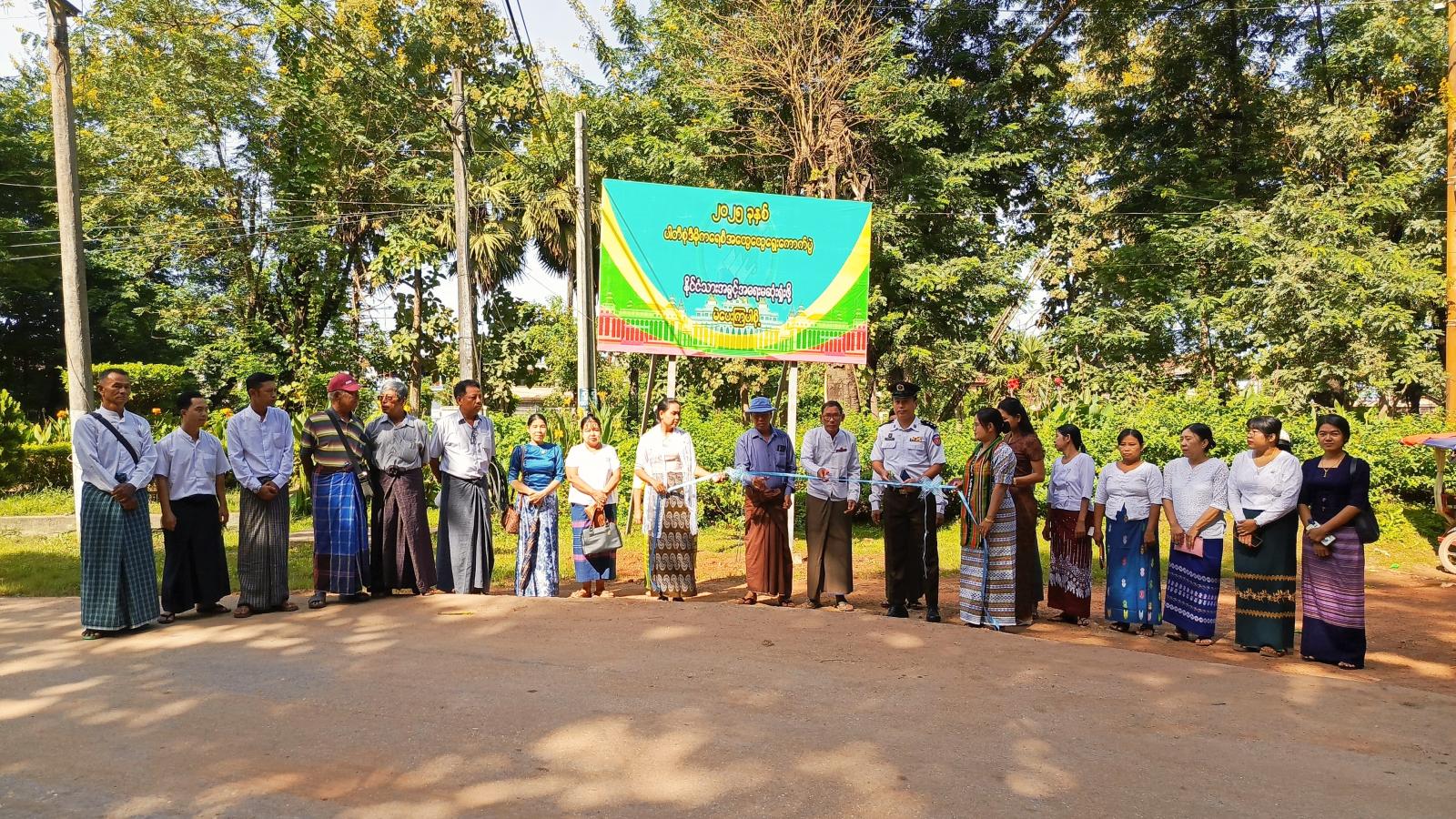 မြေစိုက်ပိုစတာအား မြို့နယ်စီမံခန့်ခွဲရေးနှင့်အုပ်ချုပ်ရေးကော်မတီအဖွဲ့ဝင်များ၊ မြို့နယ်ရွေးကောက်ပွဲကော်မရှင်အဖွဲ့ခွဲဥက္ကဋ္ဌ စောရွှေသိန်းနှင့် အဖွဲ့ဝင်များ၊ ဌာနဆိုင်ရာအကြီးအကဲများက ဖဲကြိုးဖြတ်ဖွင့်လှစ်ပေးခဲ့ကြသည်။