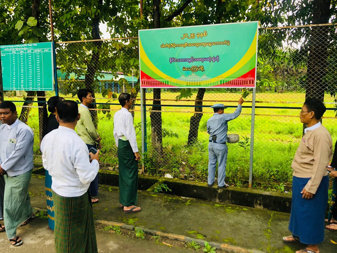 အဆိုပါ မြေစိုက်ပိုစတာအား အိမ်မဲမြို့နယ်အတွင်းရှိ ပြည်သူများ ကျယ်ကျယ်ပြန့်ပြန့်သိရှိနိုင်ရန်အတွက် လူစည်ကားရာနေရာတွင် စိုက်ထူထားခြင်းဖြစ်ပြီး မင်္ဂလာအချိန်ကျရောက်သည့်အခါ မြို့နယ်စီမံခန့်ခွဲရေးနှင့်အုပ်ချုပ်ရေးကော်မတီဥက္ကဋ္ဌ ဦးသက်ကိုကိုဦးနှင့် အဖွဲ့ဝင်များ မြို့နယ်ရွေးကောက်ပွဲကော်မရှင်အဖွဲ့ခွဲ ဥက္ကဋ္ဌနှင့် အဖွဲ့ဝင်များက အမွှေးနံ့သာရည်များကို ပတ်ဖျန်းပေးခဲ့ကြသည်။