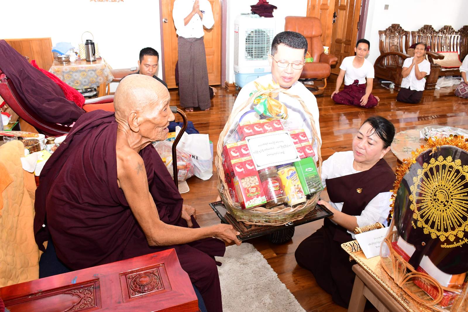 ဧရာဝတီတိုင်းဒေသကြီး ဝန်ကြီးချုပ်ဦးတင်မောင်ဝင်းနှင့်ဇနီးတို့သည် ယမန်နေ့နံနက်ပိုင်းက ပုသိမ်မြို့သဲအင်းဂူတရားပြကျောင်းတိုက် ဦးစီးပဓာနနာယက သက်တော်ရှည် ရေဆွမ်းဆရာတော် ဘဒ္ဒန္တသီဟ (မဟာကမ္မဋ္ဌာနာစရိယ)မဟာထေရ်မြတ်အား ဖူးမြော်ကြည်ညို၍ သာသနာရေးဆိုင်ရာကိစ္စရပ်များအား တင်ပြလျှောက်ထားကာ လှူဖွယ်ပစ္စည်းများ ဆက်ကပ်လှူဒါန်းသည်။