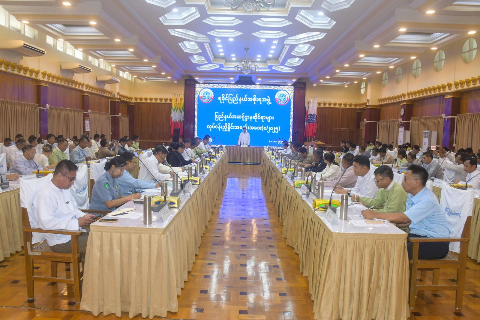 ယင်းနောက် ပြည်နယ်အစိုးရအဖွဲ့ဝင်များနှင့် ပြည်နယ်အဆင့်ဌာနဆိုင်ရာများက ပါတီစုံဒီမိုကရေစီ အထွေထွေရွေးကောက်ပွဲ အောင်မြင်စွာကျင်းပနိုင်ရေးအတွက် ပူးပေါင်းဆောင်ရွက်ရမည့်အချက်များ၊ မဲစာရင်းတွင်ပါရှိနိုင်ရေး၊ ဆန္ဒမဲပေးပိုင်ခွင့်ရှိသူတိုင်း ဆန္ဒမဲပေးနိုင်ရေး၊ မြို့သန့်ရှင်းသာယာရေး၊ ဒေသဖွံ့ဖြိုးရေးစသည့် ကိစ္စများနှင့် ပတ်သက်၍ ဆွေးနွေးတင်ပြကြသည်။