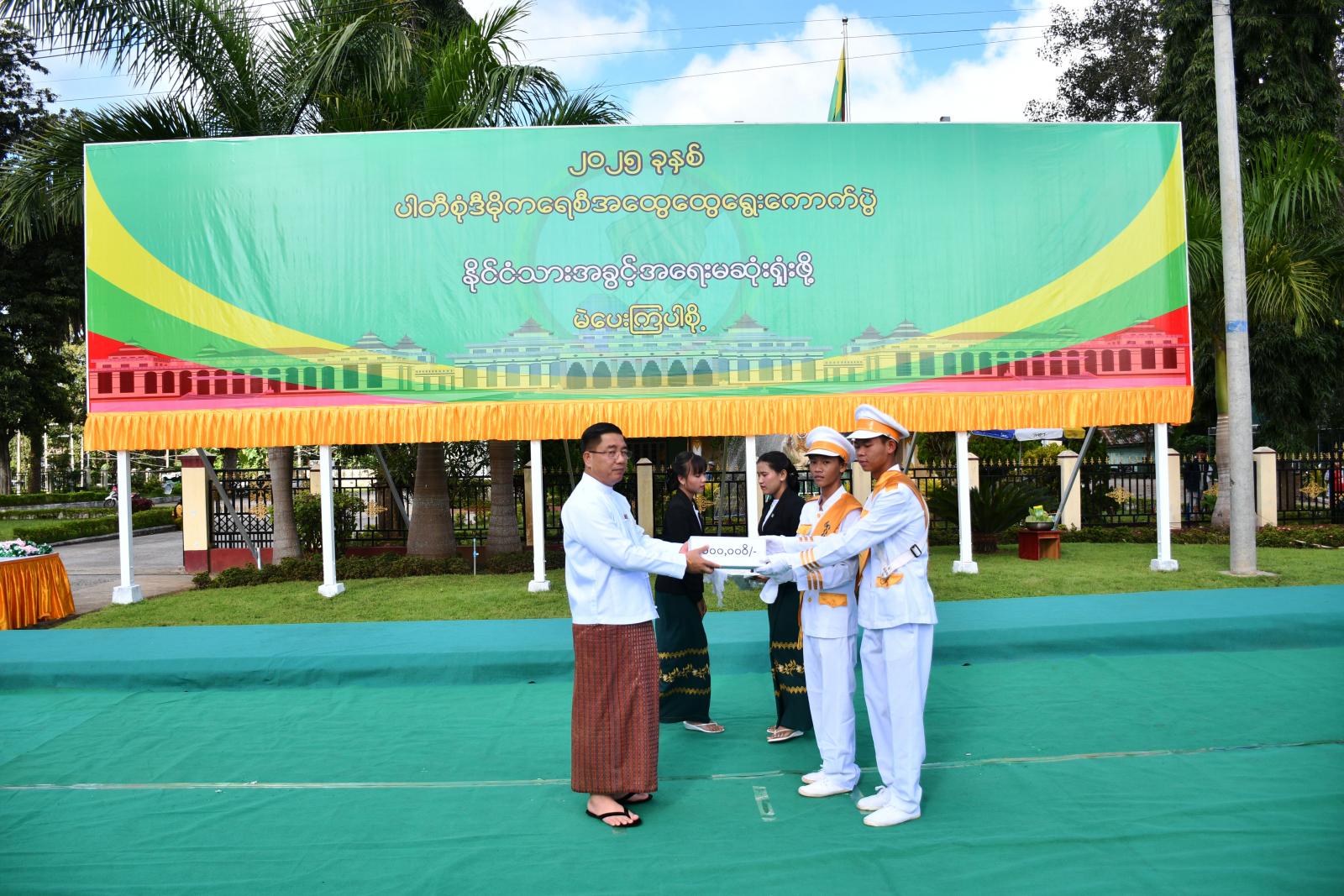 ထို့နောက် အ.ထ.က(၁)ဘင်ခရာအဖွဲ့နှင့် အထက(၅)နှင့် အထက(ခွဲ)လောဓမ္မကျောင်း ပန်းပွားအကအဖွဲ့တို့၏ တီးမှုတ်ကပြဖျော်ဖြေမှုကို ကြည့်ရှုအားပေးခဲ့ပြီး ပြည်နယ် ဝန်ကြီးချုပ်က ဘင်ခရာအဖွဲ့နှင့် ပန်းပွားအကအဖွဲ့များအား ဂုဏ်ပြုချီးမြှင့်ငွေများပေးအပ်ရာ ကိုယ်စားလှယ် အသီးသီးက လက်ခံရယူ ခဲ့ကြသည်။