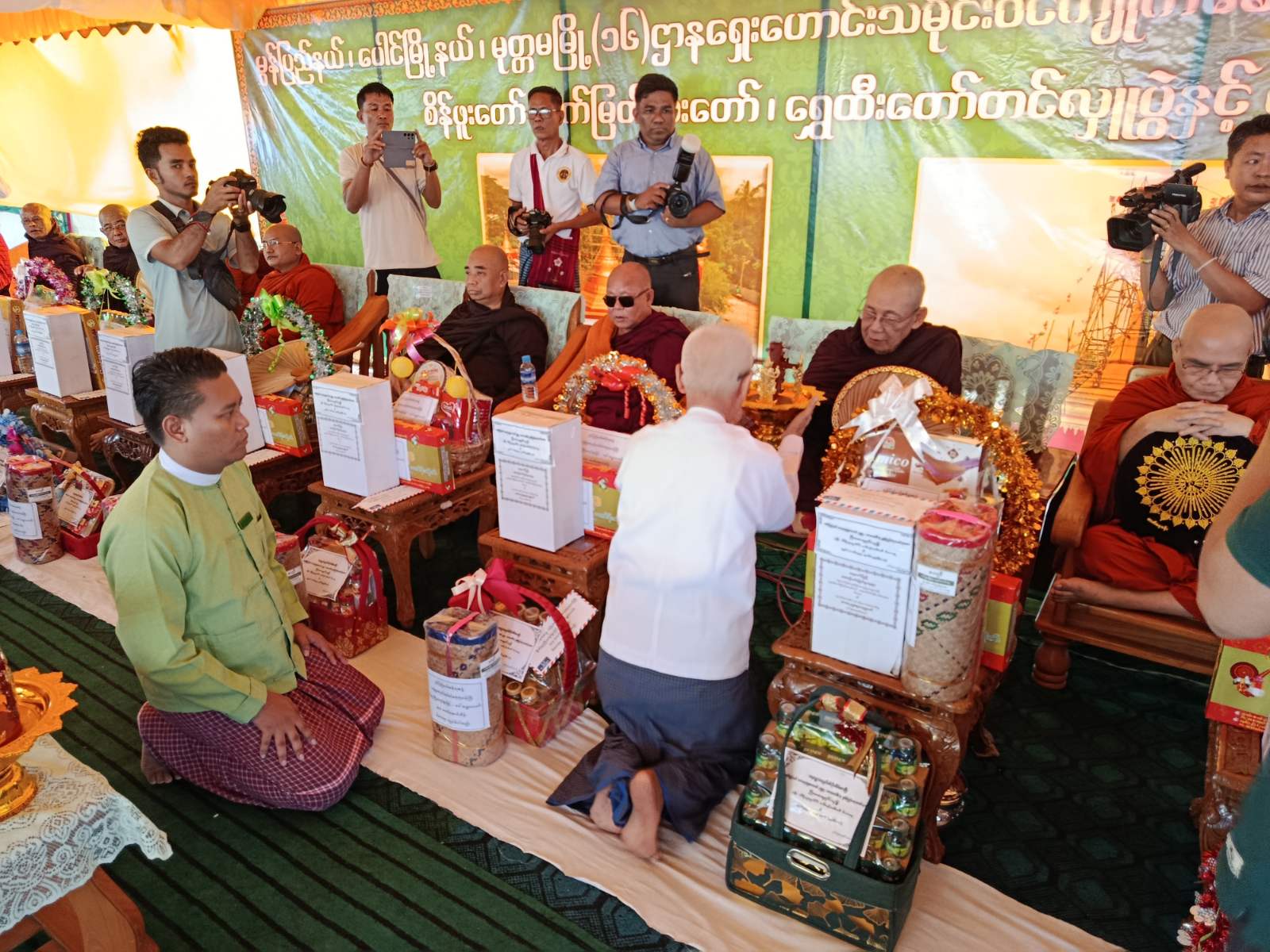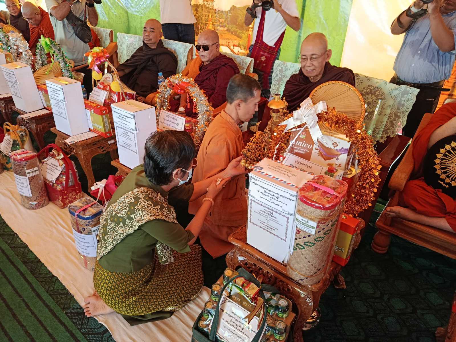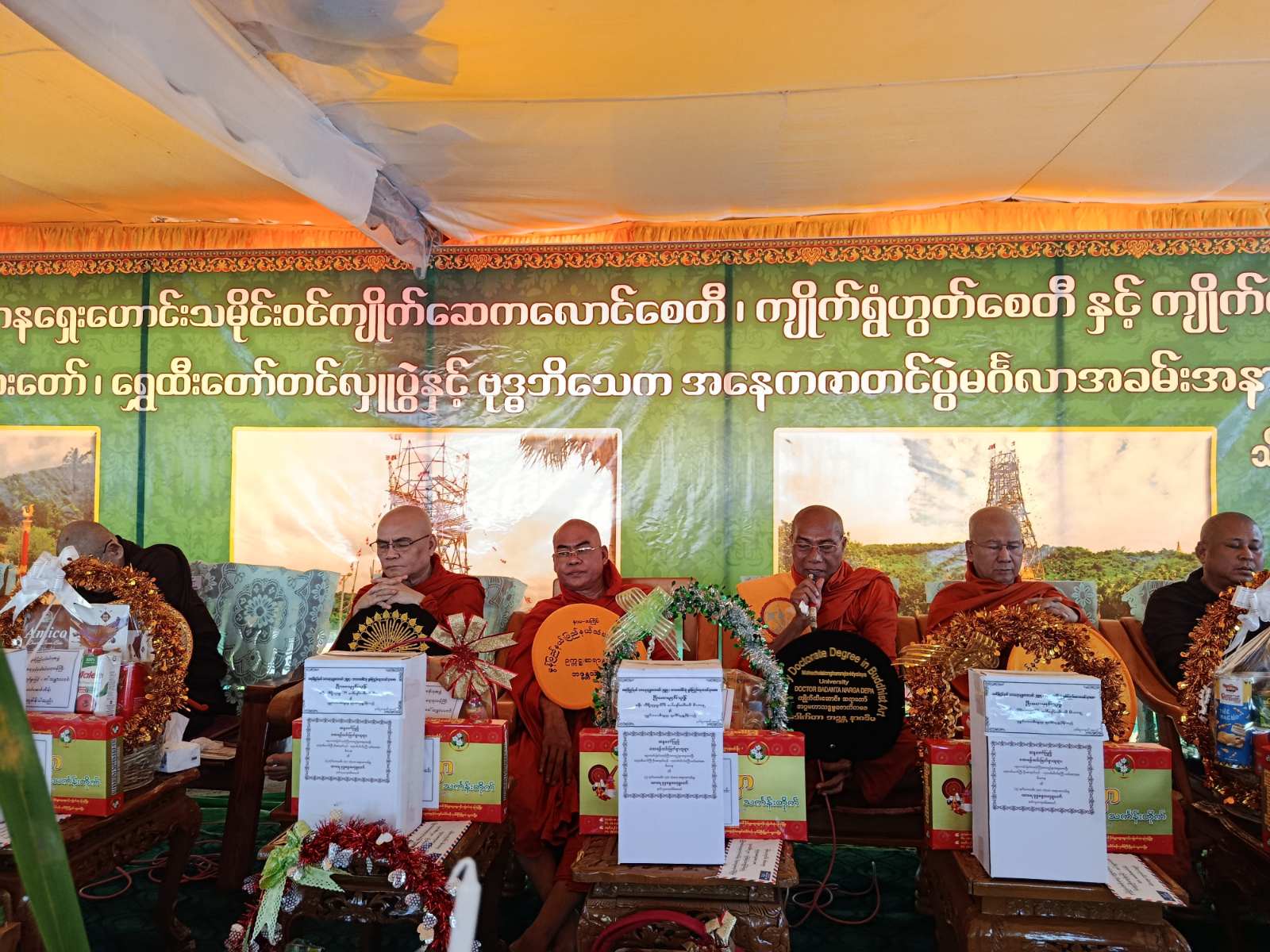 ထို့နောက် ပြည်နယ်ဝန်ကြီးချုပ်၊ ပြည်နယ်တရားလွှတ်တော်တရားသူကြီးချုပ်၊ ပြည်နယ်ဝန်ကြီးများနှင့် အလှူရှင်များက ကျိုက်ဆေကလောင်၊ ကျိုက်ရွံဟွတ်၊ ကျိုတ်မာလှိုင် စေတီတော်မြတ်ကြီးတွင် တင်လှူပူဇော်မည့် စိန်ဖူးတော်၊ ငှက်မြတ်နားတော်နှင့် လှူဖွယ်ဝတ္ထုပစ္စည်းများကို သံဃာတော်အရှင်သူမြတ်များထံ ဆက်ကပ်လှူဒါန်းခဲ့ကြသည်။