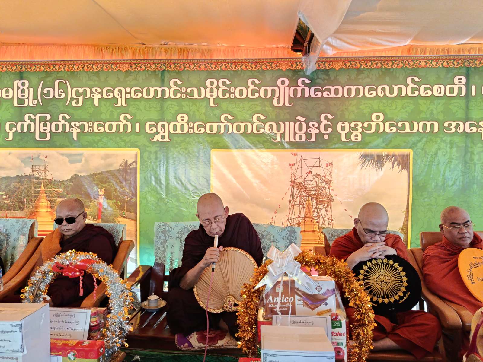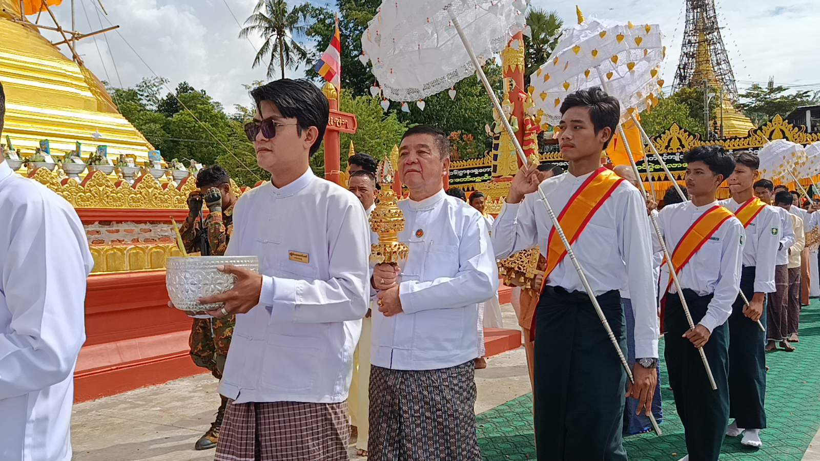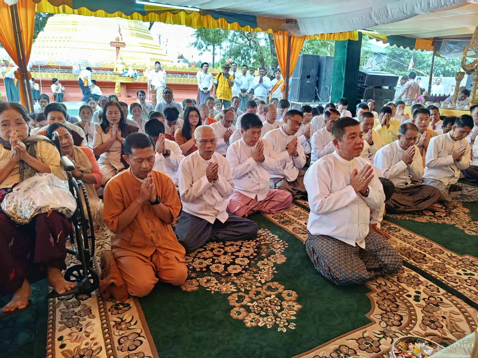 ထို့နောက် ပြည်နယ်ဝန်ကြီးချုပ်၊ ပြည်နယ်တရားလွှတ်တော်တရားသူကြီးချုပ်၊ ပြည်နယ်ဝန်ကြီးများနှင့် အလှူရှင်များက ကျိုက်ဆေကလောင်၊ ကျိုက်ရွံဟွတ်၊ ကျိုတ်မာလှိုင် စေတီတော်မြတ်ကြီးတွင် တင်လှူပူဇော်မည့် စိန်ဖူးတော်၊ ငှက်မြတ်နားတော်နှင့် လှူဖွယ်ဝတ္ထုပစ္စည်းများကို သံဃာတော်အရှင်သူမြတ်များထံ ဆက်ကပ်လှူဒါန်းခဲ့ကြသည်။