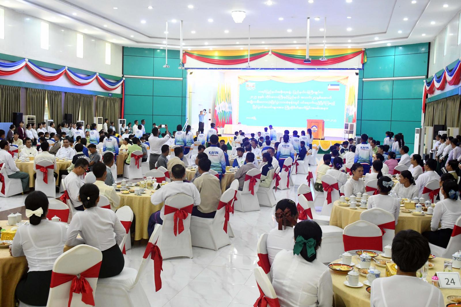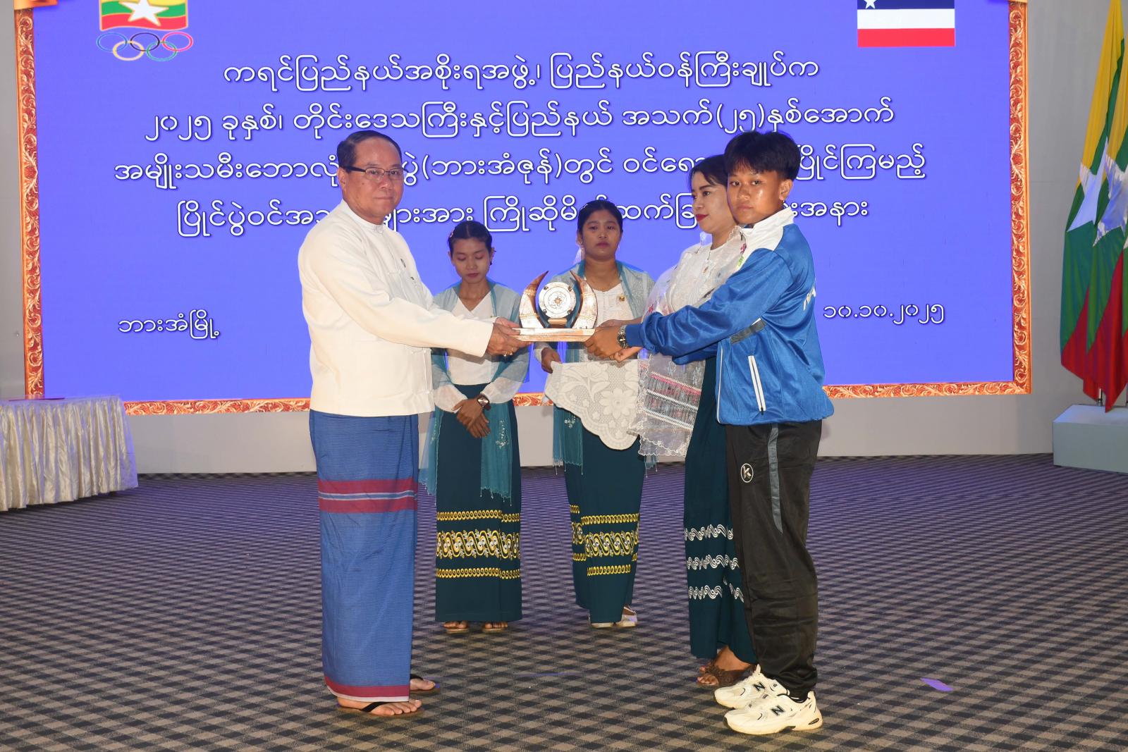 ၂၀၂၅ ခုနှစ်၊ တိုင်းဒေသကြီးနှင့်ပြည်နယ် အသက်(၂၅)နှစ်အောက် အမျိုးသမီးဘောလုံးပြိုင်ပွဲ အုပ်စု(ခ)ဘားအံဇုန်တွင် ဝင်ရောက်ယှဉ်ပြိုင်ကြမည့် တိုင်းဒေသကြီးနှင့် ပြည်နယ်ကိုယ်စားပြုအသင်းများအား ကြိုဆိုမိတ်ဆက်သည့်အခမ်းအနားကို အောက်တိုဘာလ ၁၀ ရက်နေ့ နံနက်ပိုင်းက ဘားအံမြို့၊ ဇွဲကပင်ခန်းမ၌ ကျင်းပခဲ့သည်။