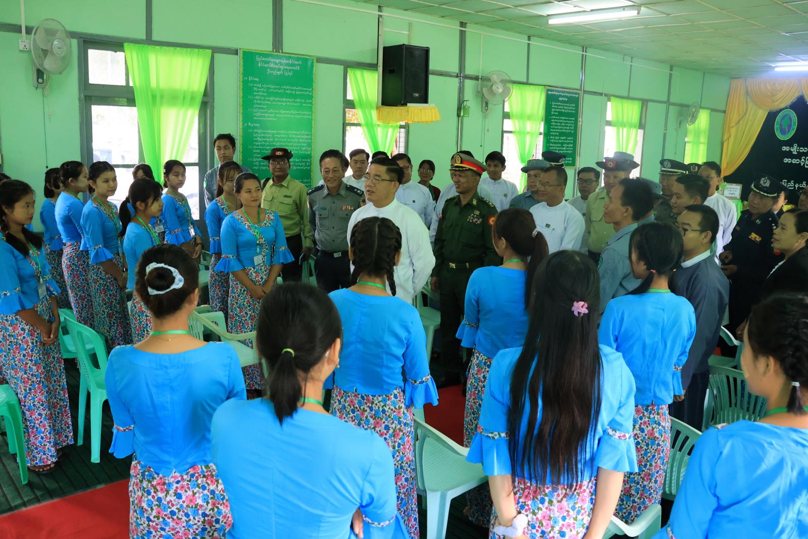 အခမ်းအနား၌ ပြည်နယ်ဝန်ကြီးချုပ်က အဖွင့်အမှာစကားပြောကြားရာတွင် နယ်စပ်ဒေသရှိ တိုင်းရင်းသားလူငယ်များအား အခြေခံ၊ အဆင့်မြင့် ပညာရပ်များ သင်ကြားလေ့ကျင့်ပေးပြီး လူမှုစီးပွားဖွံ့ဖြိုးတိုးတက်ရေး လုပ်ငန်းစဉ်များတွင် ပူးပေါင်းပါဝင်ဆောင်ရွက်လာစေရန်၊ အမျိုးသမီးငယ်များကို အိမ်တွင်းမှု သက်မွေးလုပ်ငန်းပညာများ သင်ကြားလေ့ကျင့်ပေးပြီး ကိုယ်ပိုင်စီးပွားရေးလုပ်ငန်းများ ထူထောင်နိုင်သည်အထိ ကူညီဆောင်ရွက်ပေးရန်ဟူသော ကောင်းမွန်သည့် ရည်ရွယ်ချက်များဖြင့် ဖွင့်လှစ်ပေးခြင်းဖြစ်ကြောင်း၊ သင်တန်းသူများအနေဖြင့် တတ်မြောက်လာသည့် အသက်မွေးဝမ်းကျောင်းပညာရပ်များကို လက်တွေ့အသုံးချ၍ မိမိတို့ဘဝ ဖွံ့ဖြိုးတိုးတက်ရေးနှင့် ဒေသဖွံ့ဖြိုးရေး လုပ်ငန်းစဉ်များတွင် ဝိုင်းဝန်းပူးပေါင်းဆောင်ရွက်ပေးရန်ဖြစ်ကြောင်း စသည်ဖြင့် ပြောကြားခဲ့သည်။
