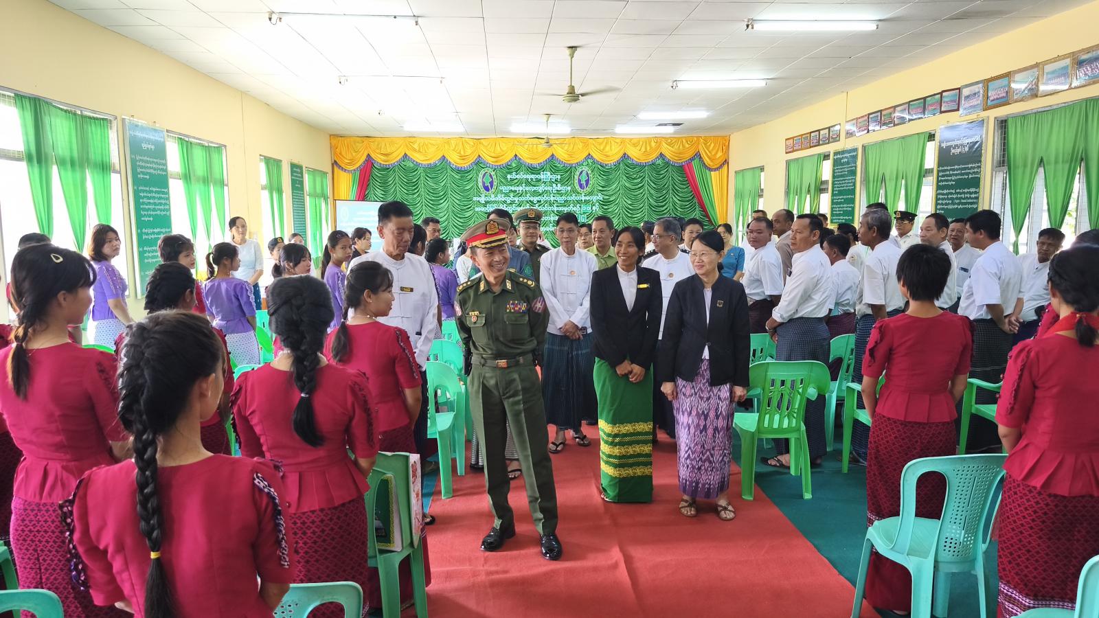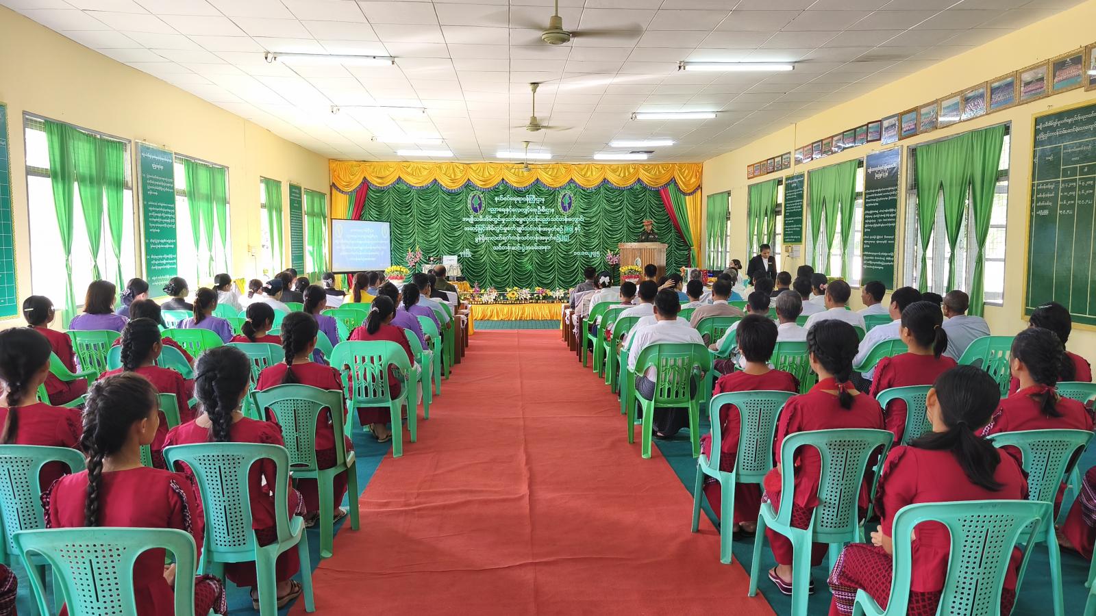 အခမ်းအနားတွင် ပြည်နယ်အစိုးရအဖွဲ့ဝင် လုံခြုံရေးနှင့်နယ်စပ်ရေးရာဝန်ကြီး ဗိုလ်မှူးကြီး ကျော်စွာမြင့်က တစ်နိုင်ငံလုံး အသိပညာ၊ အတတ်ပညာမြင့်မားတိုးတက်စေရေး၊ ကုန်ထုတ်လုပ်မှု အထောက်အကူပြုပညာရှင်များထွန်းကားလာစေရေးအတွက်လူတိုင်းလက်လှမ်းမီသည့် ဘက်စုံပညာရေးစနစ်ကို အကောင်အထည် ဖော်ဆောင်ရေးအတွက် ဘက်စုံပညာရေး ကဏ္ဍများကို မြှင့်တင်ဆောင်ရွက်ပေးလျက်ရှိသလို အိမ်တွင်းမှုသင်တန်းများကိုလည်း စဥ်ဆက်မပြတ် ဖွင့်လှစ်သင်ကြားပေးနေကြောင်း၊ သင်တန်းသူများအနေဖြင့်လည်း တတ်မြောက်ပြီးသည့် ပညာရပ်များကိုအသုံးချ၍ ကိုယ်ပိုင်စီးပွားရေးလုပ်ငန်းများ ထူထောင်နိုင်သည်အထိ မိမိတို့ဘဝဖွံ့ဖြိုးတိုးတက် အောင်ဆောင်ရွက်ကာ ဒေသဖွံ့ဖြိုးရေး လုပ်ငန်းများကိုလည်း ပူးပေါင်းပါဝင်ကြရန် သင်တန်းဆင်းအမှာစကား ပြောကြားသည်။ ထို့နောက် ပြည်နယ်တရားလွှတ်တော် တရားသူကြီးချုပ်နှင့် ပြည်နယ်အစိုးရအဖွဲ့ဝင်များက သင်တန်းများတွင် ထူးချွန်ဆုရရှိသူများနှင့် သင်တန်းဆင်း အောင်လက် မှတ်များကို ပေးအပ်ချီးမြှင့်ပြီး သင်တန်းသူတစ်ဦးမှ ကျေးဇူးတင်စကား ပြန်လည်ပြောကြားခဲ့သည်။ ဆက်လက်၍ ကျောင်းအုပ်ဆရာမကြီးမှ သင်တန်းကျောင်းဆိုင်ရာအချက်အလက်များကို ရှင်းလင်းတင်ပြ၍ ပြည်နယ်ဝန်ကြီးချုပ်နှင့်အတူ ဝန်ကြီးများက သင်တန်းသူများ ချုပ်လုပ်ထားသည့် လက်ရာများကို လှည့်လည်ကြည့်ရှုအားပေးခဲ့သည်။