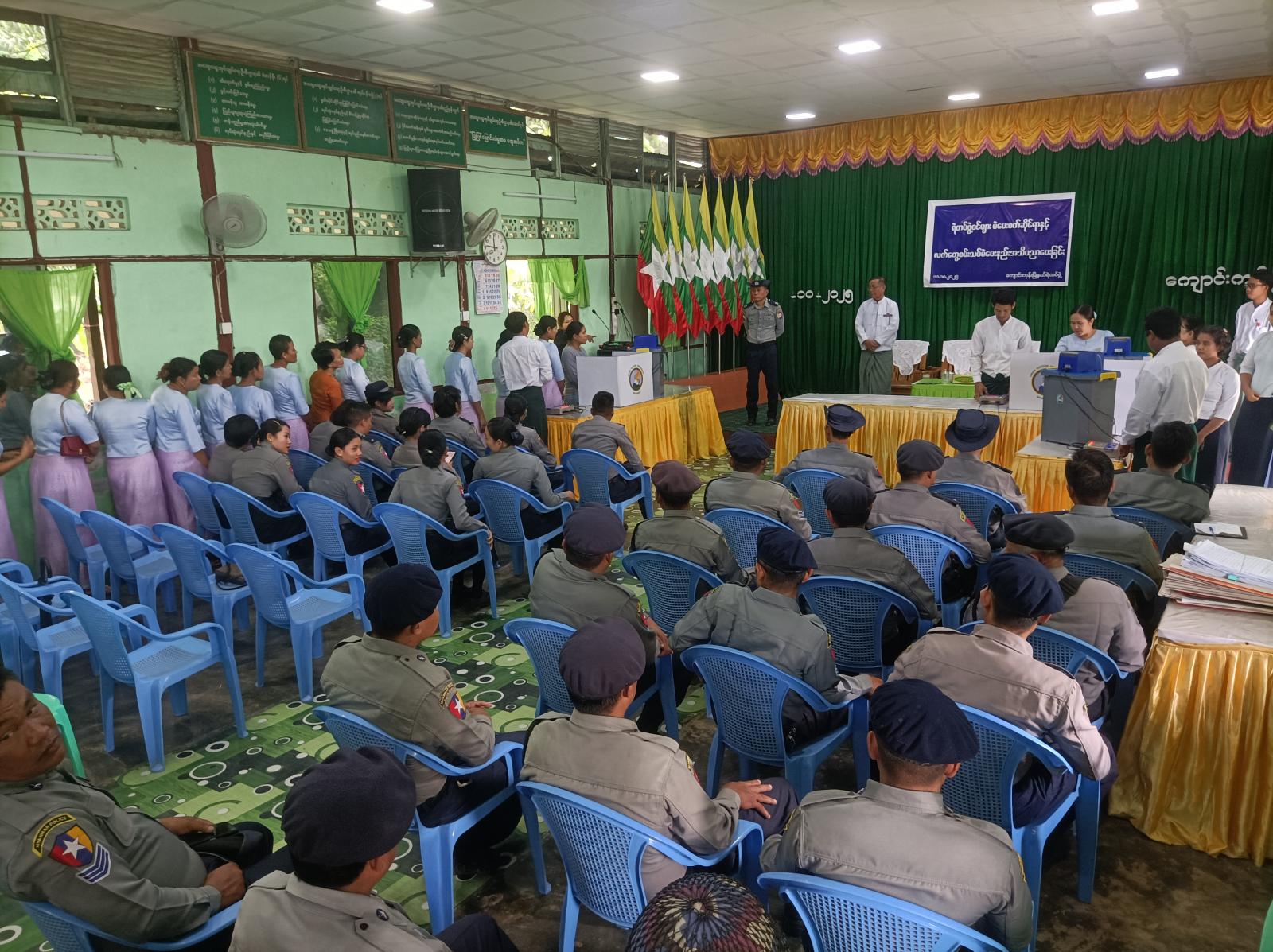 အခမ်းအနားသို့ မြို့နယ်ရွေးကောက်ပွဲကော်မရှင်အဖွဲ့ခွဲဥက္ကဋ္ဌနှင့်အဖွဲ့ဝင်များ၊ မြို့နယ်ရဲတပ်ဖွဲ့မှူးနှင့် ရဲတပ်ဖွဲ့ဝင်များ၊ ရဲတပ်ဖွဲ့မိသားစုများ တက်ရောက်ခဲ့ကြပြီး အီလက်ထရောနစ်မဲပေး စက်ဖြင့်လက်တွေ့စမ်းသပ် မဲပေးခဲ့ကြကြောင်း သိရသည်။