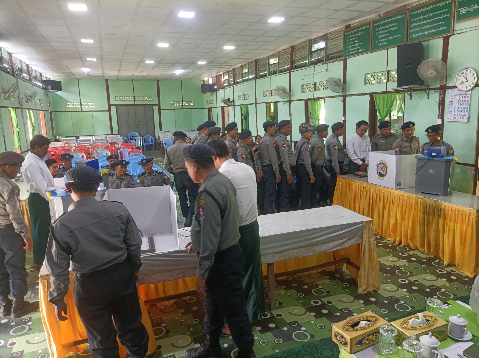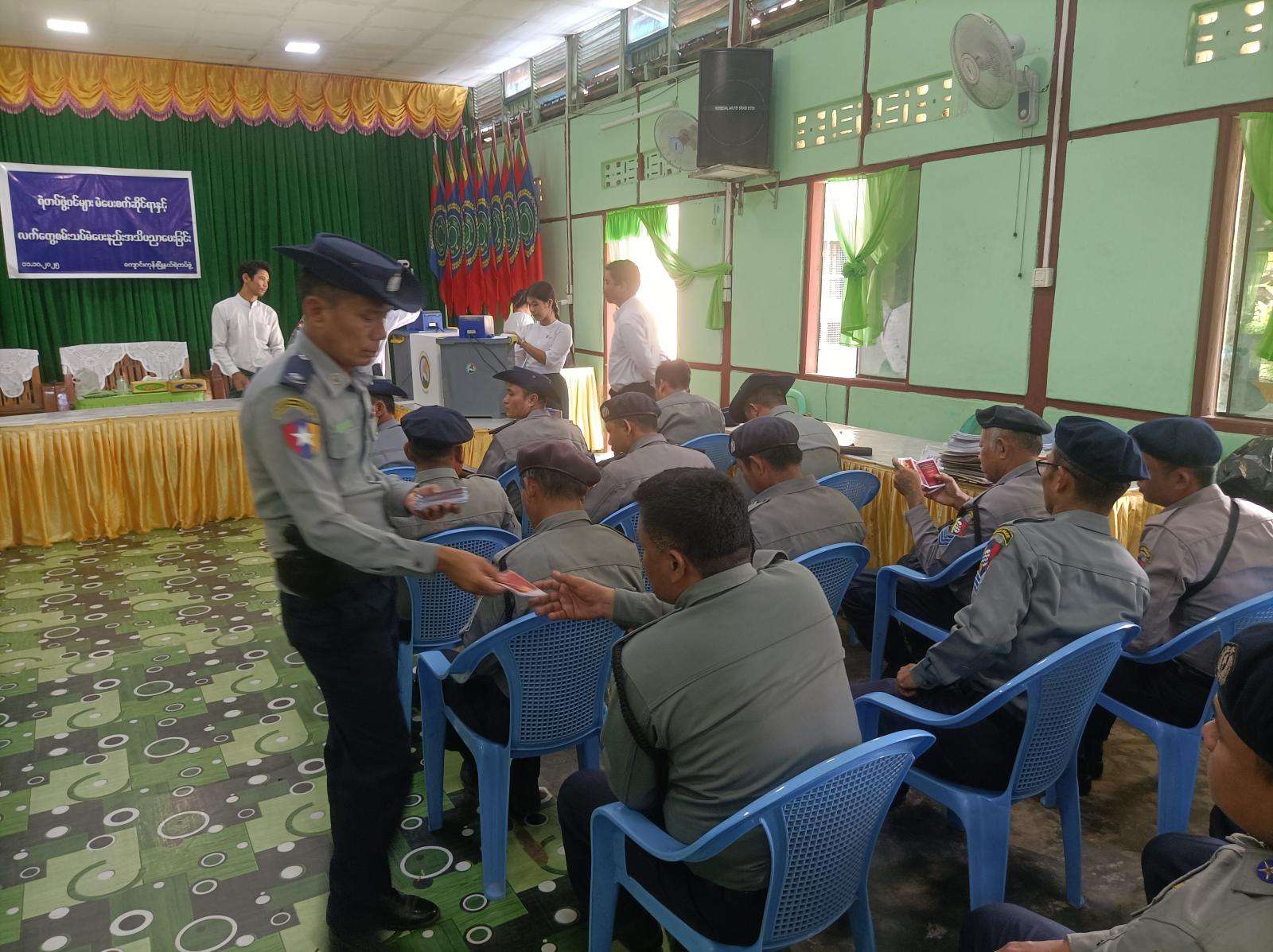 ဧရာဝတီတိုင်ဒေသကြီး၊ ကျုံပျော်ခရိုင်၊ ကျောင်းကုန်းမြို့နယ်အထွေထွေအုပ်ချုပ်ရေးဦးစီးဌာနရုံး၊ အေးချမ်းသာယာခန်းမ၌ ရဲတပ်ဖွဲ့ဝင်များ မဲပေးစက်ဆိုင်ရာနှင့် လက်တွေ့စမ်းသပ်မဲပေးနည်း အသိပညာပေးခြင်းကို အောက်တိုဘာ ၁၁ ရက်နေ့ နံနက် ၁၁ နာရီက ကျင်းပပြုလုပ်ခဲ့သည်။