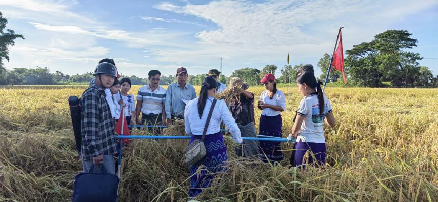 ဧရာဝတီတိုင်းဒေသကြီး၊ ကျုံပျော်ခရိုင်၊ ကျုံပျော်မြို့နယ် စိုက်ပျိုးရေးဦးစီးဌာနက ဦးဆောင်ကာ ၂၀၂၅-၂၀၂၆ ခုနှစ် မိုးစပါးရာသီ စံကွက်ရိတ်သိမ်းခြင်းအခမ်းအနားကို အင်းမကျေးရွာအုပ်စု၊ အင်းမကျေးရွာရှိ ကွင်းအမှတ်-၄၀၀ တောင်သူ ဦးအေးသိန်း၏ ဆင်းသုခစပါးစိုက်ပျိုးသည့် လယ်ယာမြေ နှစ်ဧက၌ အောက်တိုဘာ ၁၁ ရက်နေ့ နံနက်က ကျင်းပပြုလုပ်ခဲ့သည်။