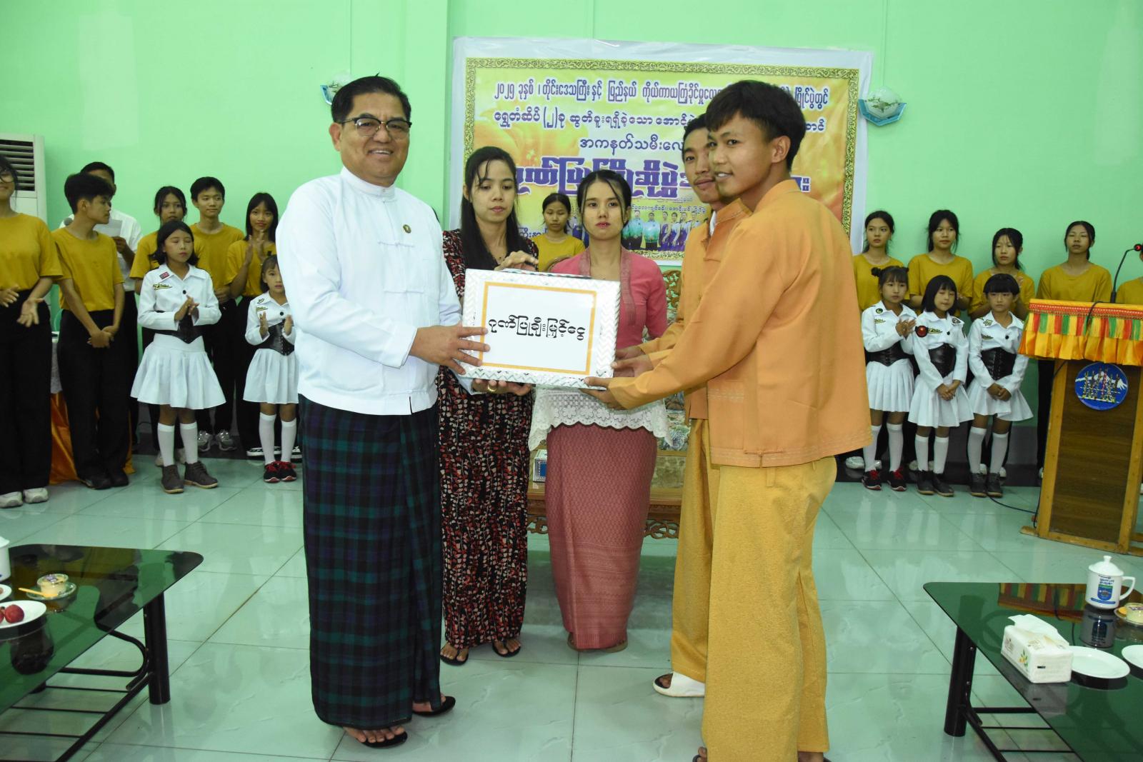 ထို့နောက် ပြည်နယ်ဝန်ကြီးချုပ်က ဂုဏ်ပြုကြိုဆိုရာတွင် ပါဝင်ကူညီပေးကြသည့် အကအဖွဲ့များနှင့် ကျောင်းသား/ ကျောင်းသူများအား ဂုဏ်ပြုချီးမြှင့်ငွေများကို အသီးသီးပေးအပ်ချီးမြှင့်ရာ အေရိုးဗစ်အသင်းနည်းပြက ပြိုင်ပွဲအတွေ့အကြုံများ၊ ဆုတံဆိပ်ရရှိခဲ့မှုများနှင့် ကျေးဇူးတင်စကား ပြန်လည်ပြောကြားခဲ့သည်။