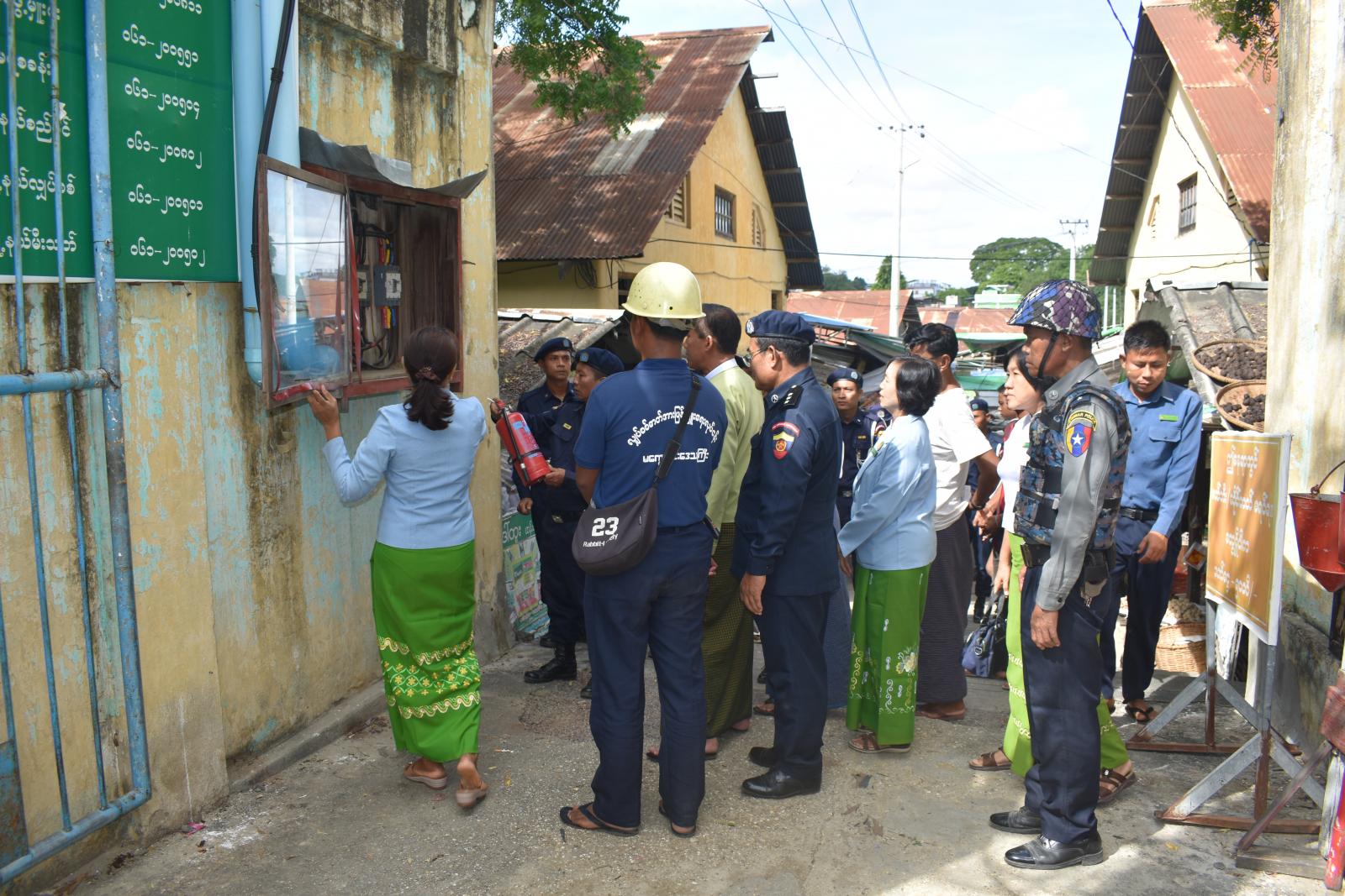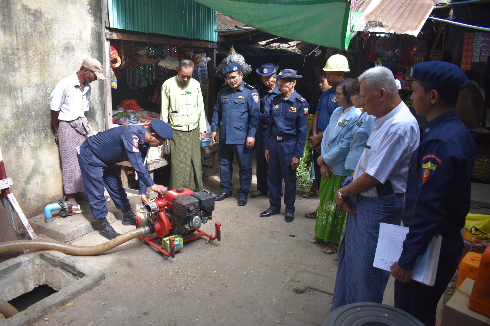 ထိုသို့စစ်ဆေးဆောင်ရွက်ရာတွင် မြို့မဈေးကြီး၌ DCP မီးသတ်ဆေးဘူးအား အသုံးပြုရရှိမှုရှိမရှိစစ်ဆေးခြင်း၊ အပေါ့စား မီးငြိမ်းသတ်စက်တို့၏ စက်ကြံခိုင်ကောင်းမွန်မှု ရှိ/မရှိစစ်ဆေးခြင်း၊ မြို့မစျေးအတွင်းရေဂါလံ(၂၇၀၀)ဆံ မြေအောက်ရေကန်(၂)ကန်နှင့် ဆက်သွယ်တပ်ဆင်ထားသည့် ရေပိုက်များ အားမီးသတ်စက်များဖြင့် ရေစုပ်ပက်ဖြန်း စမ်းသပ်ခြင်းများ ဆောင်ရွက်ခဲ့ပြီး မီးလောင်လွယ်ကူသည့်အမှိုက်သရိုက်နှင့် မိုးကာအစုတ်အပြဲများအား ရှင်းလင်းဖယ်ရှားခြင်း၊ လျှပ်စစ်မိန်း ခုံနှင့်လျှပ်စစ်ဝါယာကြိုးများနှင့် လျှပ်စစ်ပစ္စည်းများ ဟောင်းနွမ်းဆွေးမြေ့မှုမရှိစေရေး၊ ဈေးသိမ်း/ဈေးပိတ်ချိန်များတွင် လျှပ်စစ်မိန်းချထားရေး၊ မလိုအပ်သည့်စွန့်ပစ်ပစ္စည်းများသို လှောင်ထားမှုမရှိစေရေး၊ရောင်းချကုန်ပစ္စည်းများသာ ထားရှိရေးတို့အား မြို့နယ်မီးဘေးလုံခြုံရေးကော်မတီဥက္ကဋ္ဌ၊ မြို့နယ်အုပ်ချုပ်ရေးမှူးဦးစိုးလွင်က လိုအပ်သည်များကိုလမ်းညွှန် မှာကြားအကြံပေးခြင်းများ ဆောင်ရွက်ခဲ့ကြောင်း သိရသည်။